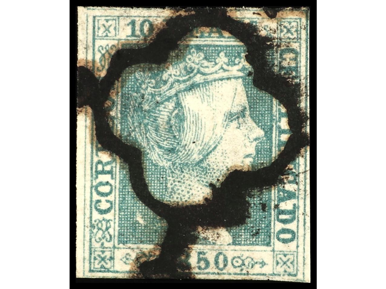 ESPAÑA. 10 reales verde. Sello de lujo por todos sus conceptos. Cert. CEM. PRECIOSO. MUY RARO. Ed.11. Cat. 720€. (Image1) (Image2)