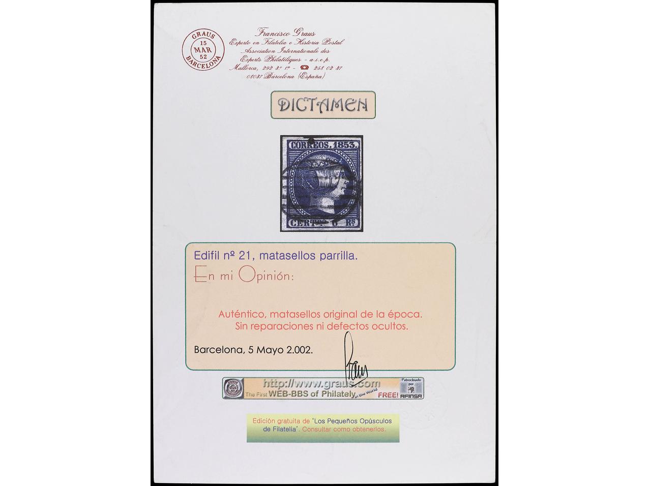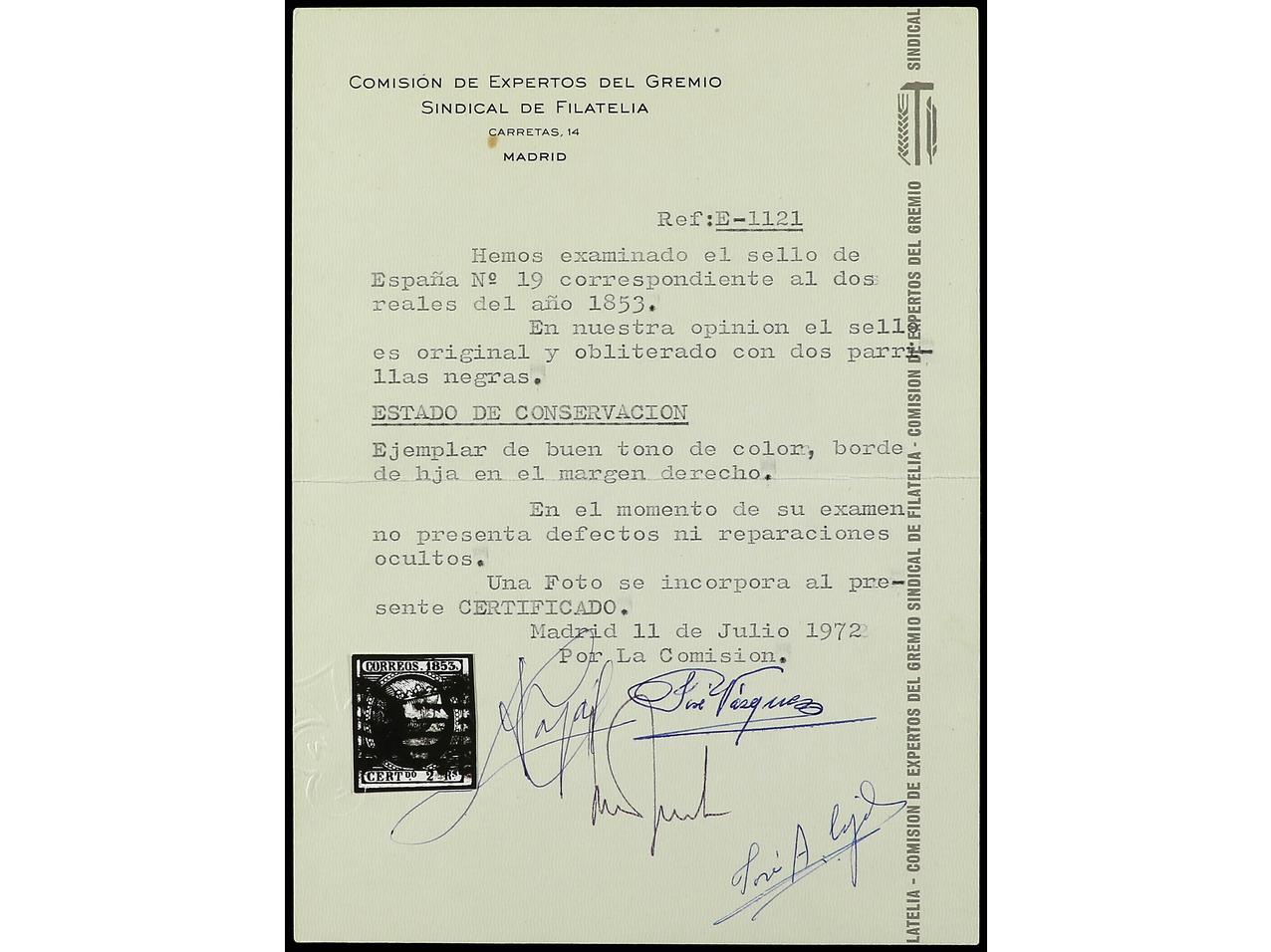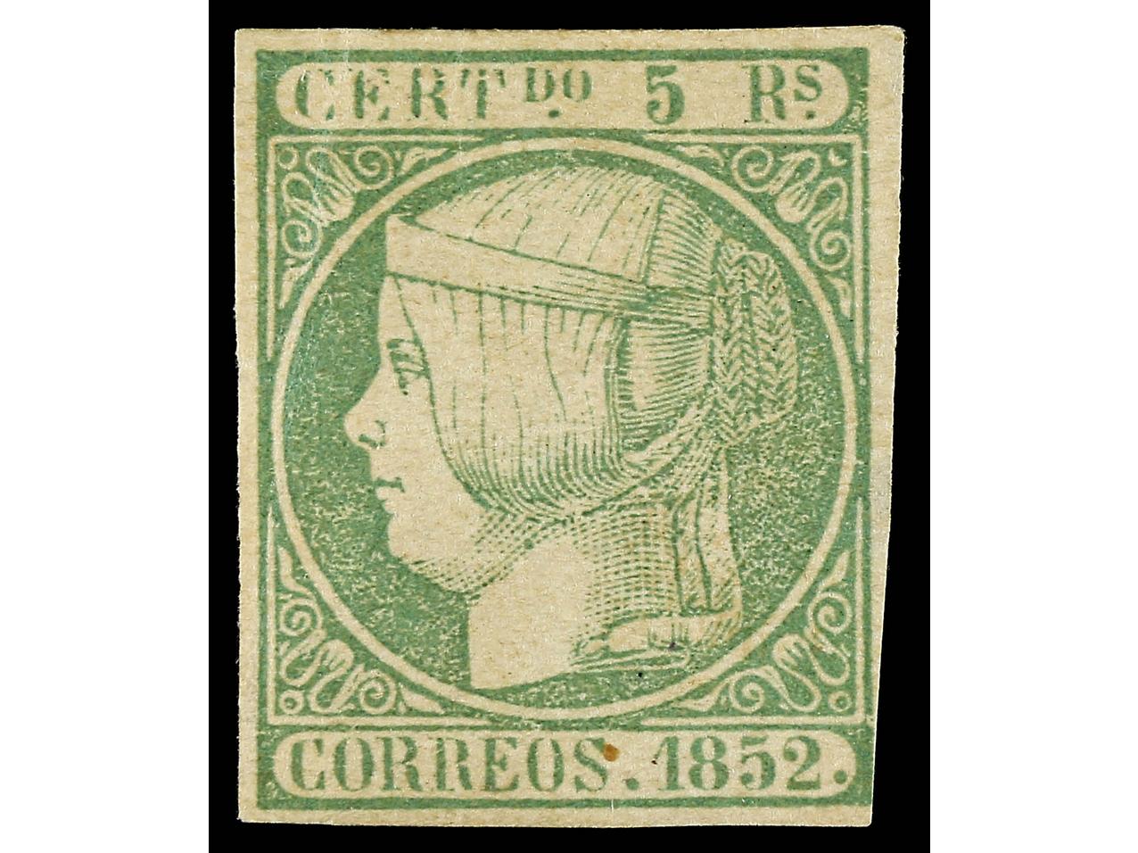 ESPAÑA. 6 reales azul verdoso. Amplios márgenes. Dictamen CEM. PRECIOSO. RARO. Ed.16. (Image1) (Image2)