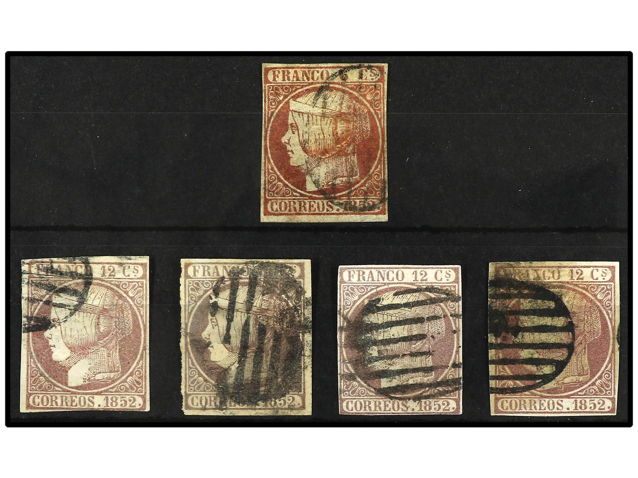 ESPAÑA. 12 cuartos lila. 4 ejemplares, alguno con defecto. Se incluye Ed. º 12. Ed.13 (4). Cat. 520€. (Image1)