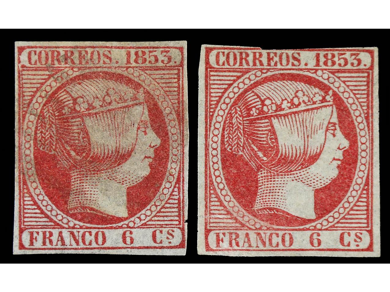 ESPAÑA. 6 c., 12 c., 5 r. y 6 r. Algún valor ínfimo defecto. 6 r. sin defecto y dictamen GRAUS. A EXAMINAR. Ed.17/8, 20/1. Cat. 622€. (Image1) (Image2)