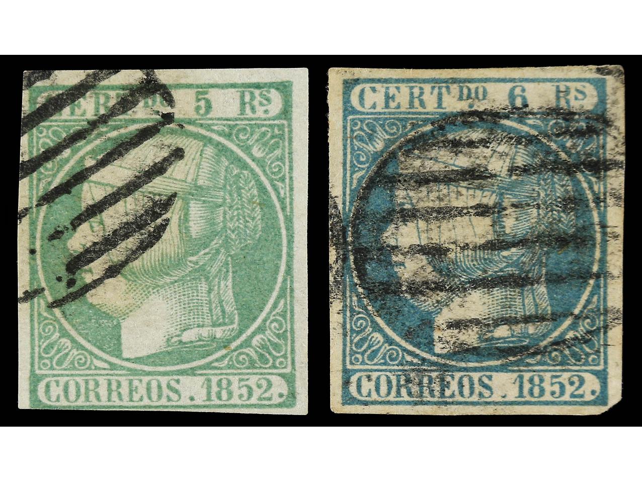 ESPAÑA. 5 reales verde y 6 reales azul, mínimo defecto. Ed.15, 16. Cat. 580€. (Image1)