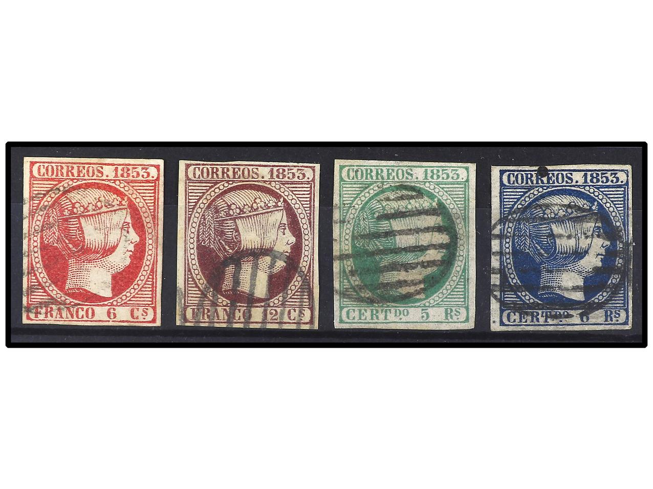 ESPAÑA. 6 c., 12 c., 5 r. y6 r. Buenos ejemplares de márgenes completos. 6 r. Cert. COMEX. A EXAMINAR. Ed.12/3, 15/6. Cat. 713€. (Image1) (Image2)