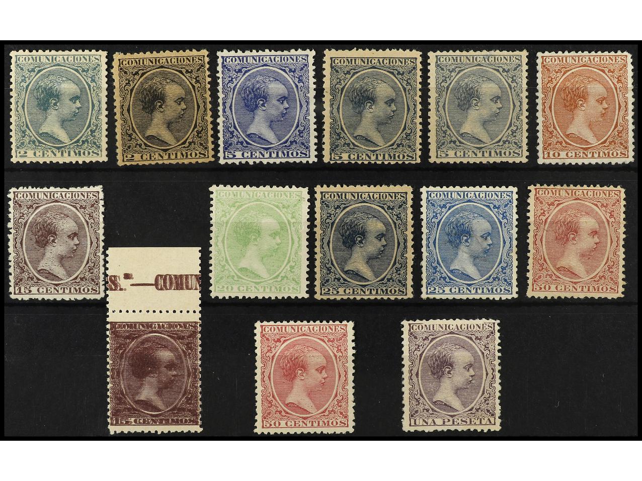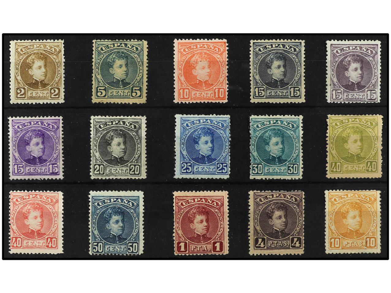 ESPAÑA. Conjunto de 14 sellos de la serie Pelón. Buena calidad. Ed.213/15, * 216 (2), * 217m * 219 (2), * 220, * 221 (2), * 224 (2) y * 226. (Image1)