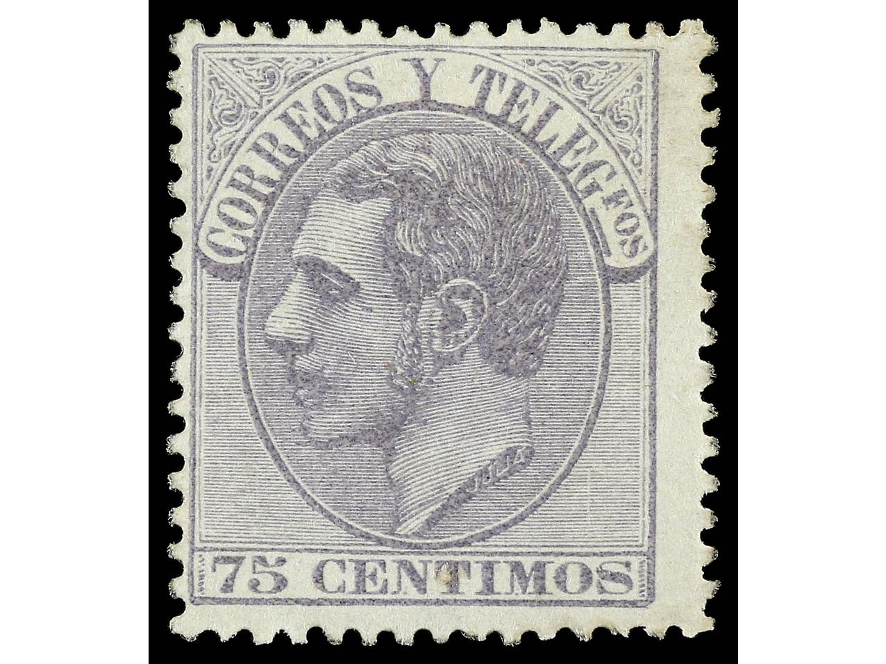 ESPAÑA. 75 c. violeta. Centrado habitual. Dentado algo retocado. Cert. C.M.F. Ed.212. Cat. 270€. (Image1) (Image2)