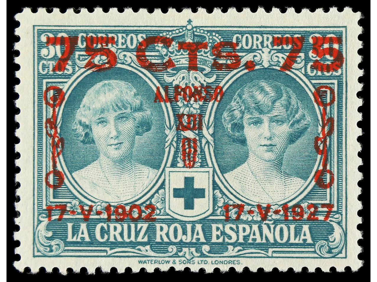 ESPAÑA. 75 cts. s. 30 cts. verde. SOBRECARGA DOBLE, una invertida. Ed.381hhi. Cat. 265€. (Image1)
