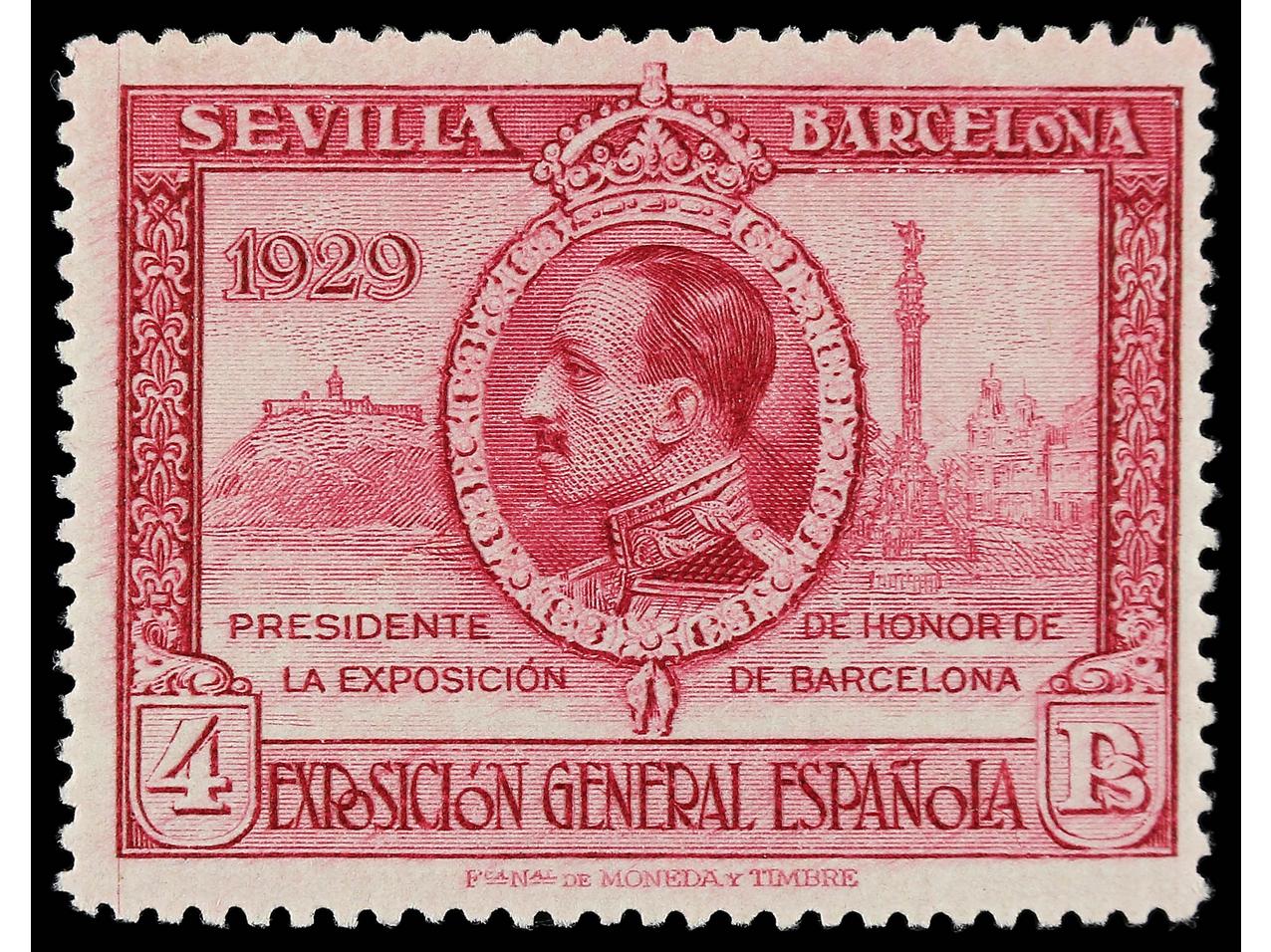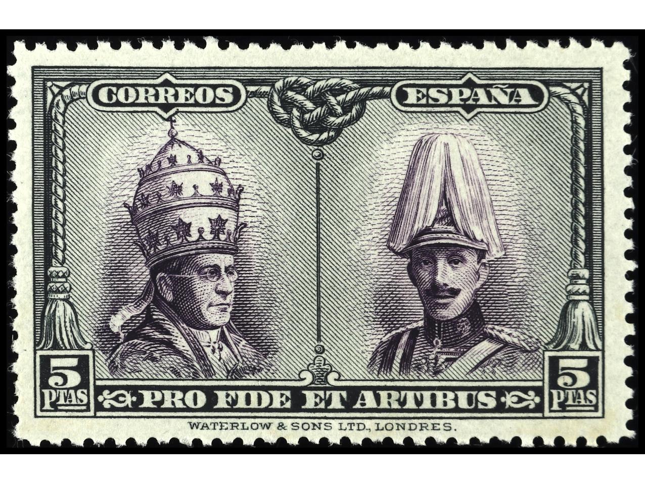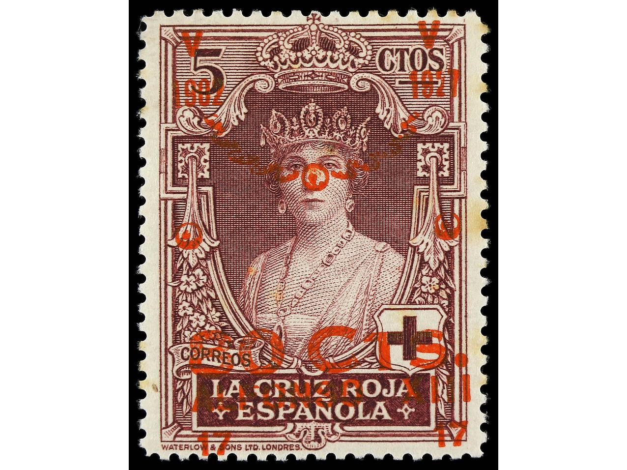 ESPAÑA. 80 cts. s. 5 cts. castaño violáceo. Firmado ROIG y GALVEZ. Tonalizado. HABILITACIÓN DESPLAZADA. A EXAMINAR. Ed.382hd. Cat. 225€. (Image1)