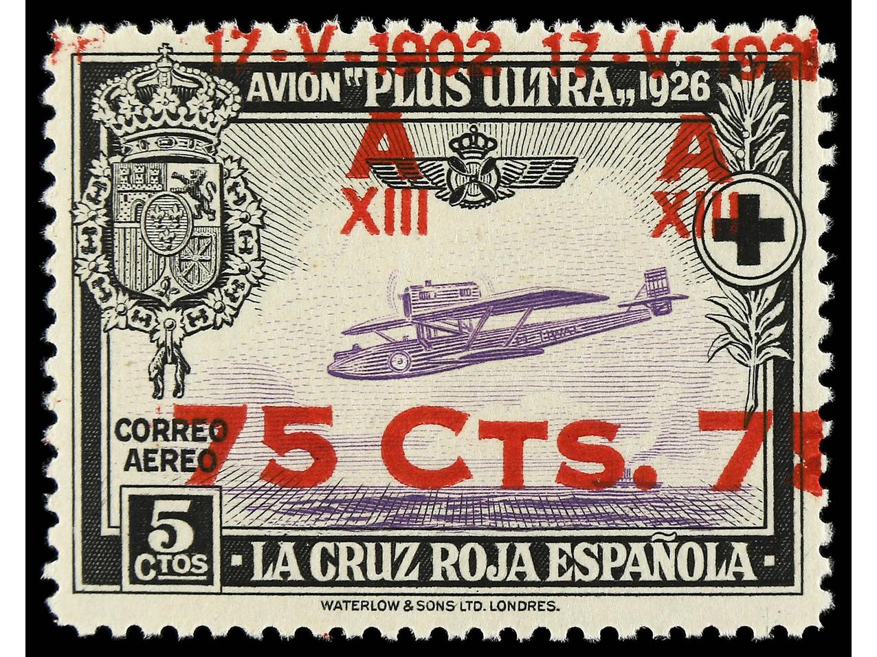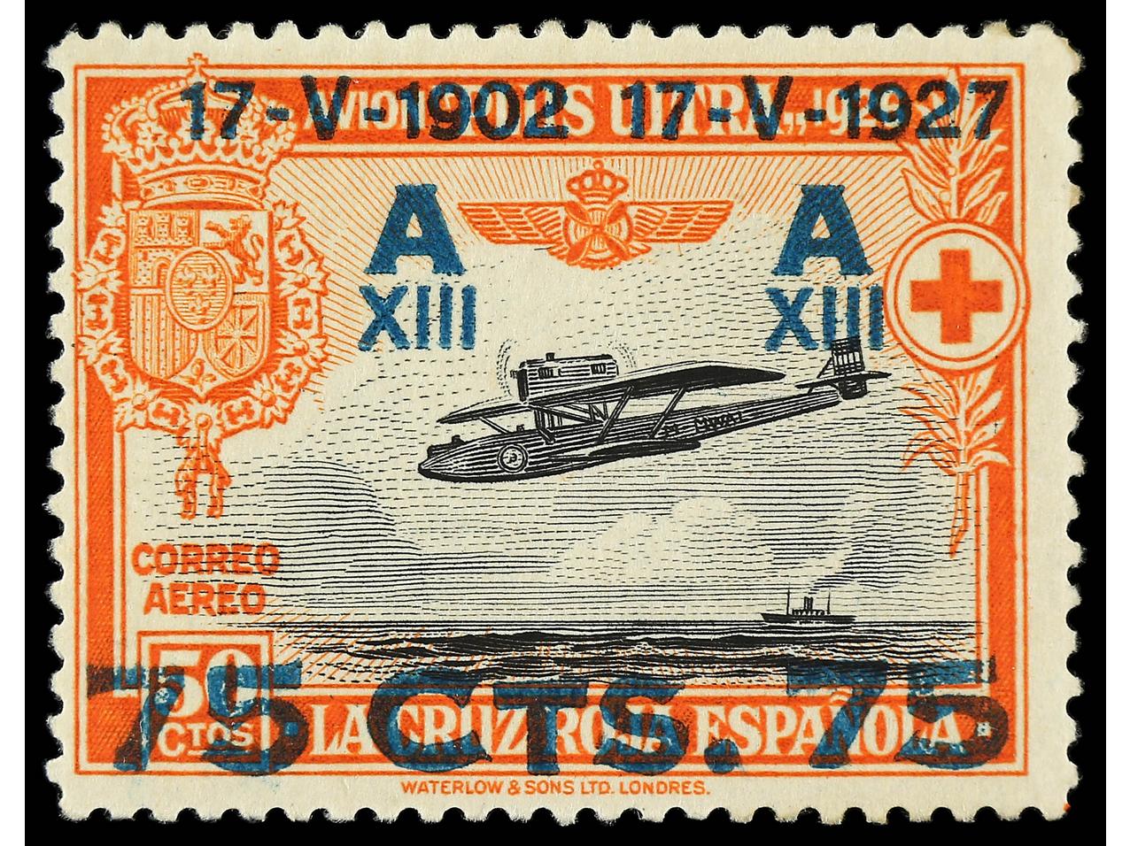 ESPAÑA. 75 cts. s. 50 cts. naranja. Variedad 11 1/2 mm. de separación entre ´XIII´ y ´C´ de CTS. No reseñado. RARO. Ed.391 var. (Image1)