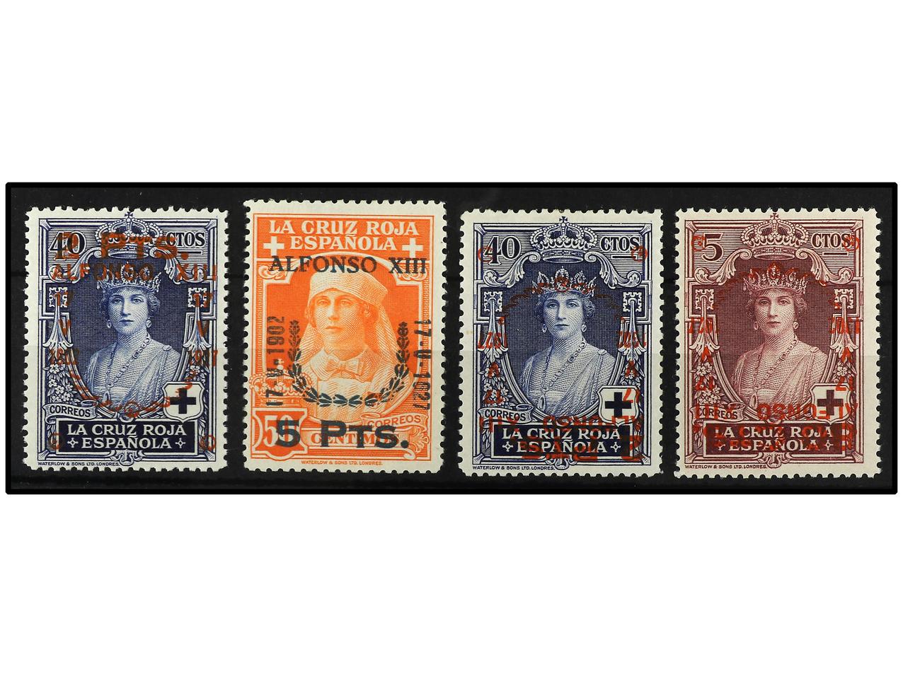 ESPAÑA. CUATRO valores con VARIEDADES EN LA HABILITACIÓN. Ed.382hi, 383hi, 383hc y 385t. Cat. 181€. (Image1) (Image2)