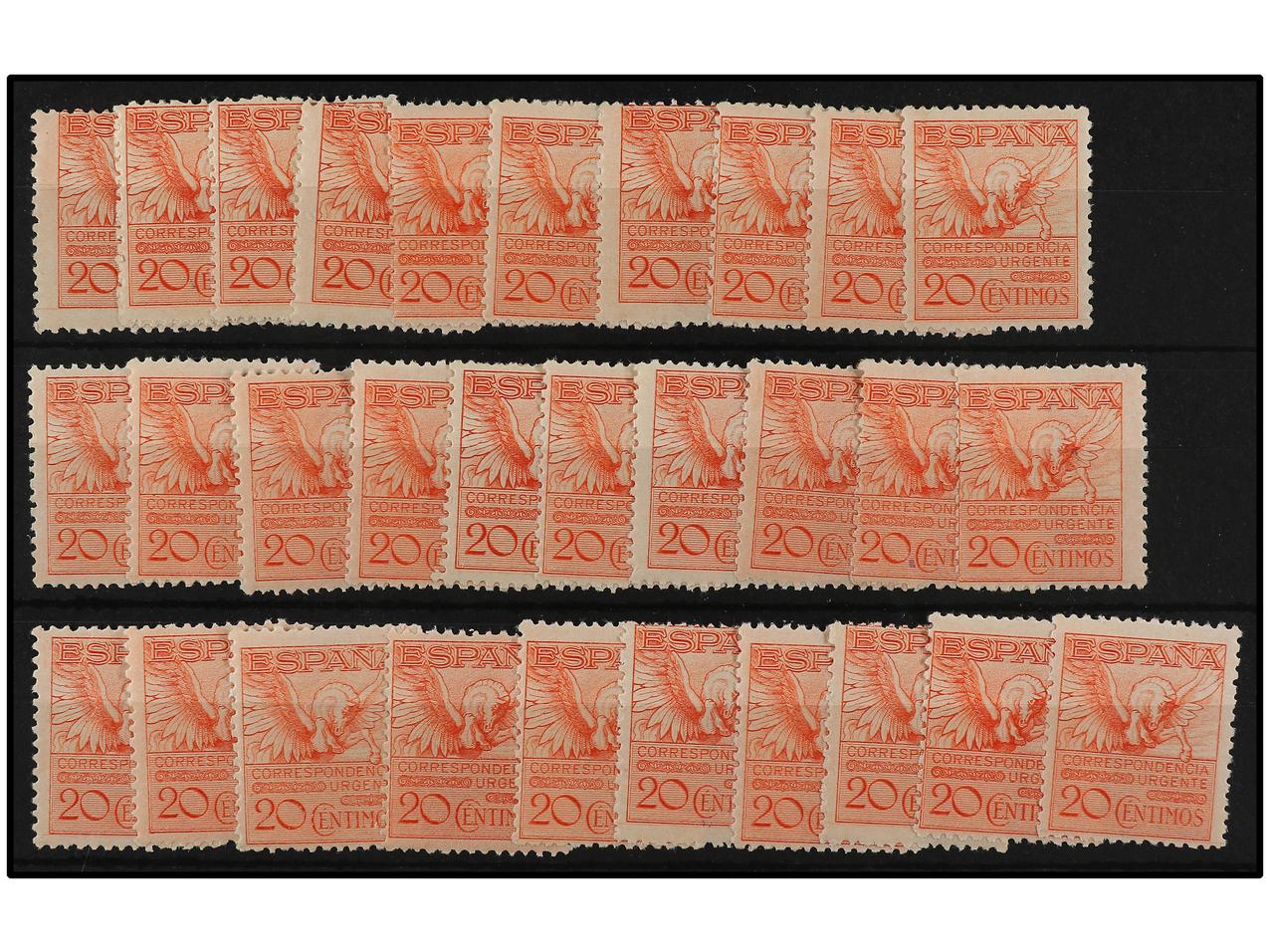 ESPAÑA. 20 c. urgente. 30 sellos. Centrados diversos. Ed.454. Cat. 1.590€. (Image1)
