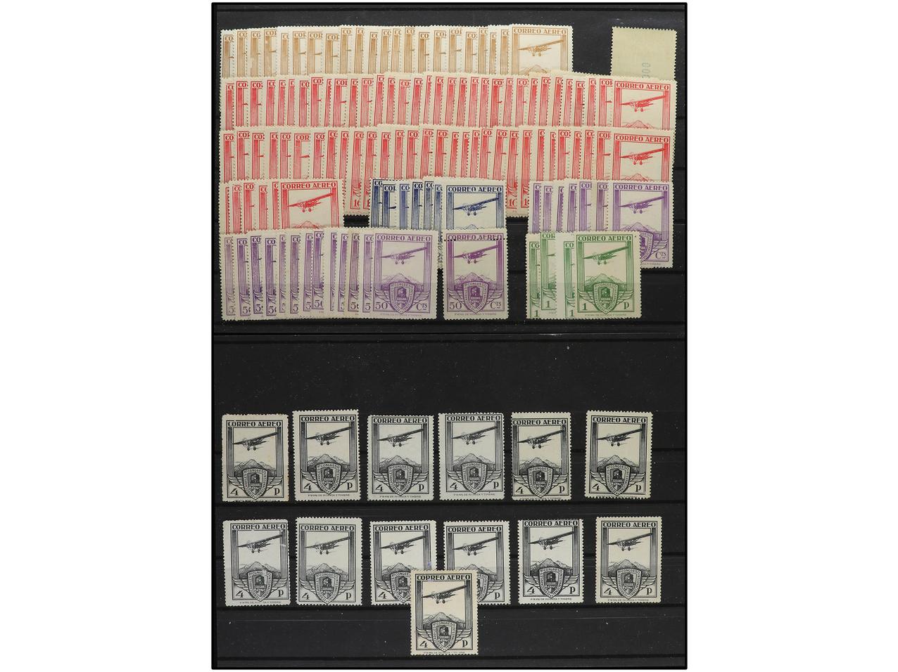 ESPAÑA. CONJUNTO de sellos en nuevo sin fijasellos en diversas cantidades, sólo falta el 25 cts. y 50 cts. para completar series. Ed.483/88. Cat. 2.611€.