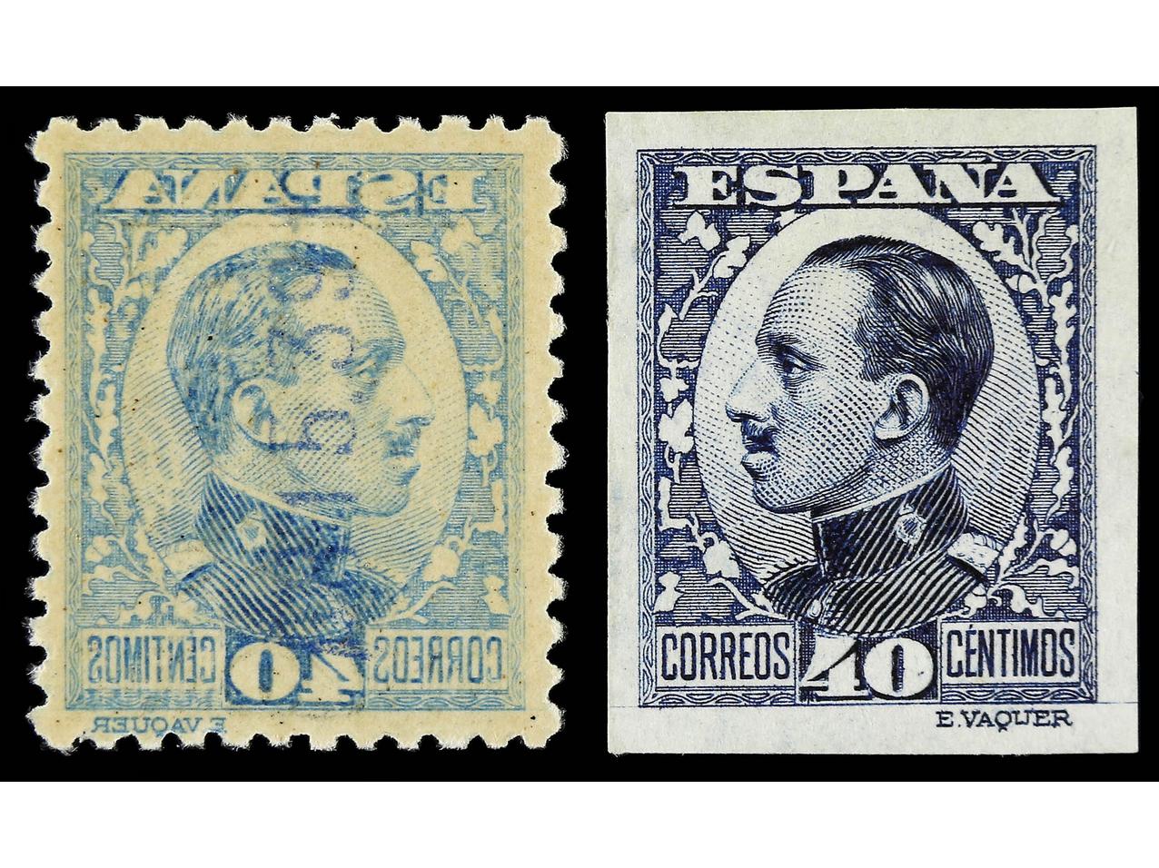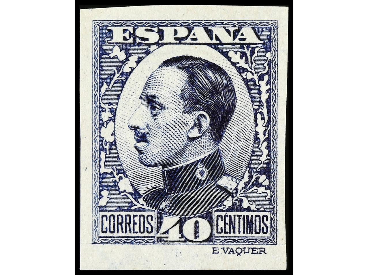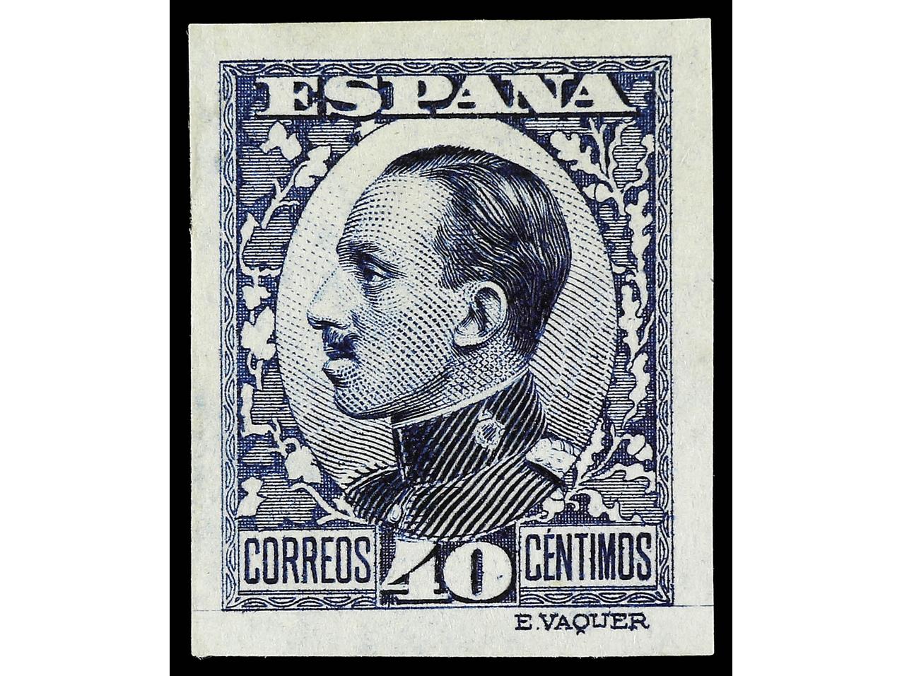 ESPAÑA. 40 cts. azul, tipo I SIN DENTAR y tipo II calcado al dorso (no reseñado). LUJO. Ed.497s y ** 497ic. (Image1) (Image2)
