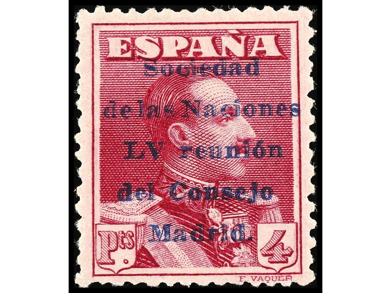 ESPAÑA. 4 pts. carmín violáceo. Muy bien centrado. Raro en esta calidad. Ed.466. (Image1)
