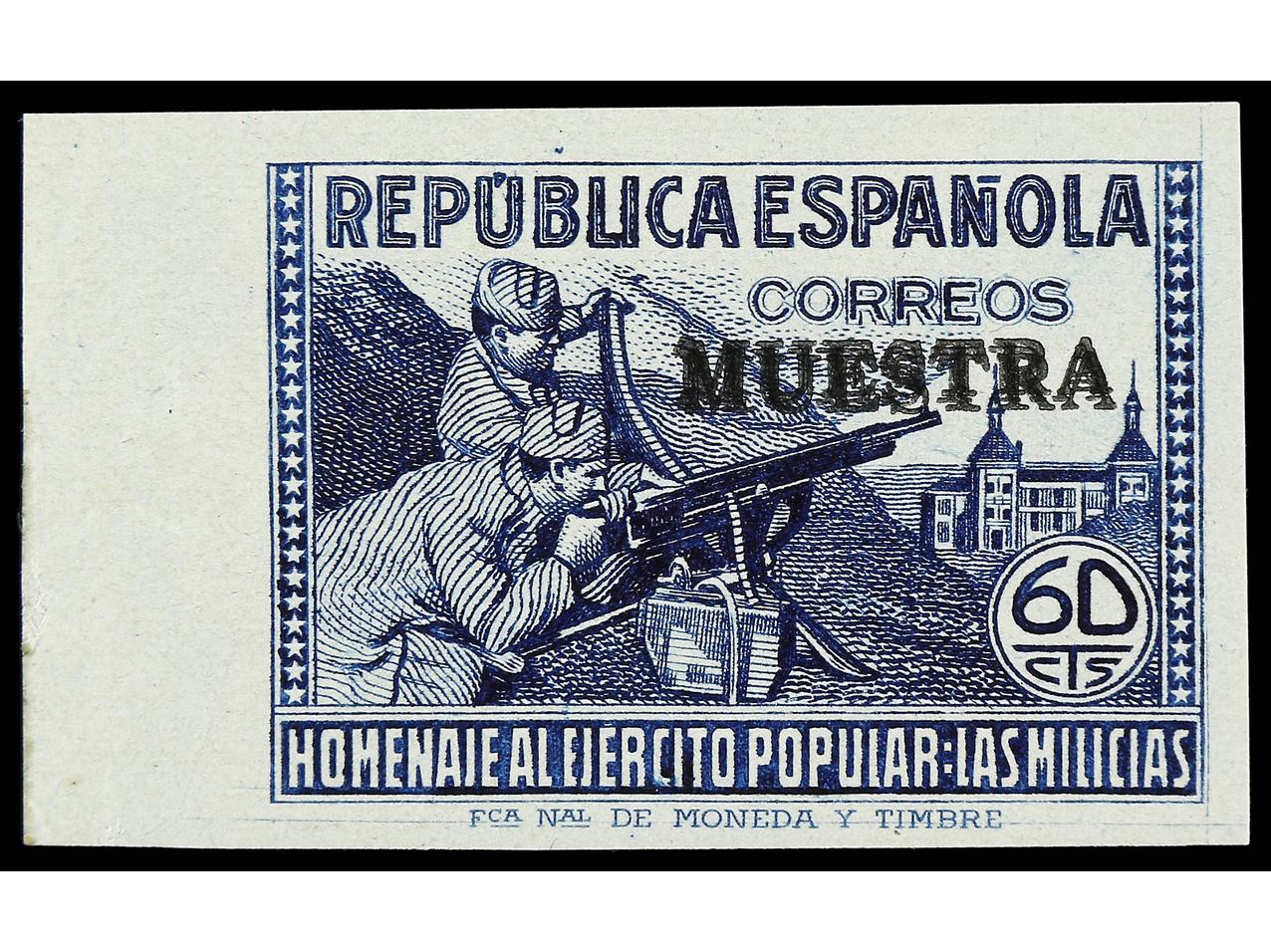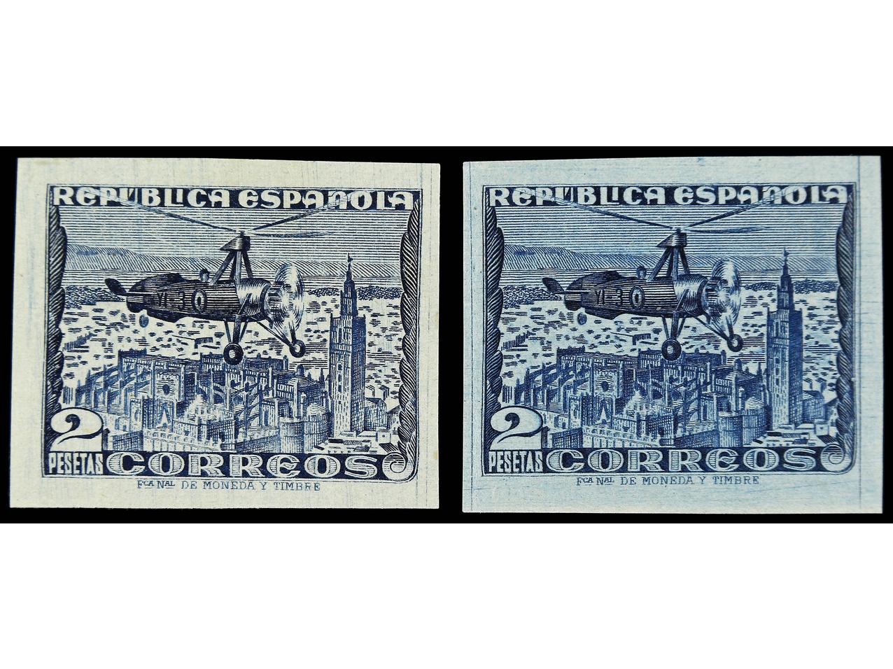 ESPAÑA. DOS sellos SIN DENTAR, sobre papel blanco y sobre papel azulado. LUJO. Ed.769s y ps. Cat. 93€. (Image1) (Image2)