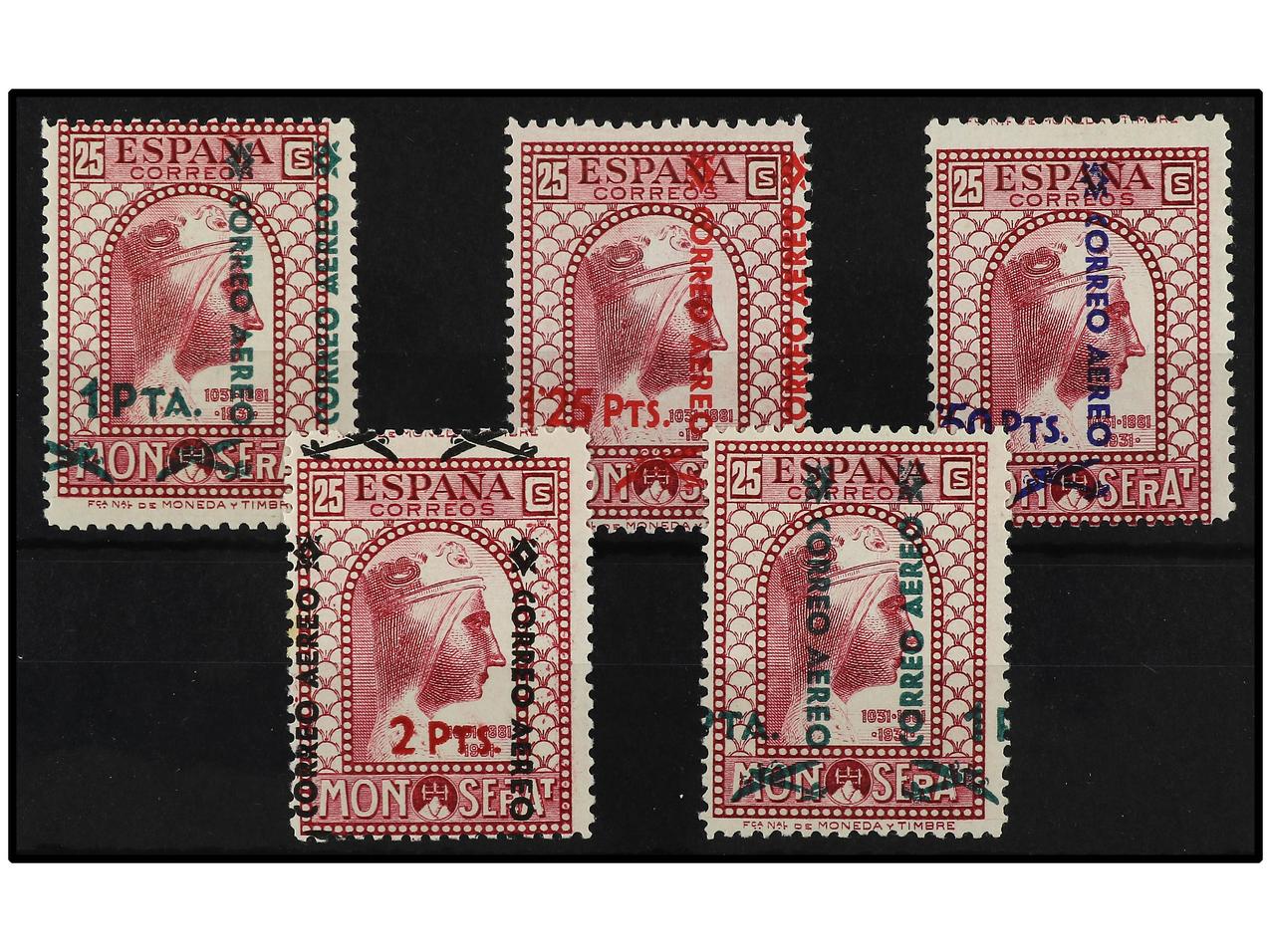 ESPAÑA. Conjunto con serie completa y sello Montserrat sobre 2,50 pts., con diversas variedades, incluyendo SIN DENTAR. Sin garantía. A EXAMINAR. Ed.789/90 y 791 + 791s. (Image1) (Image2)