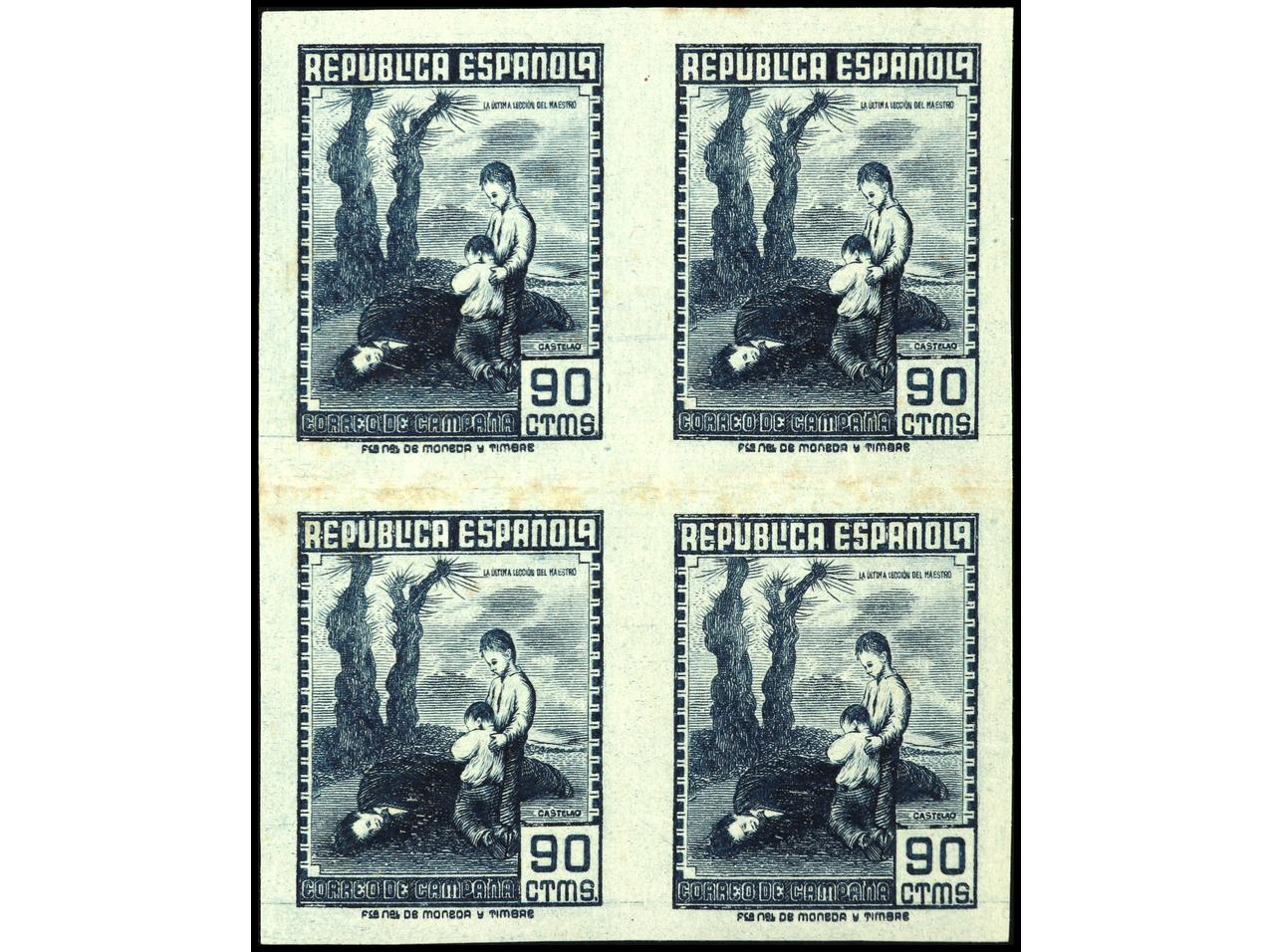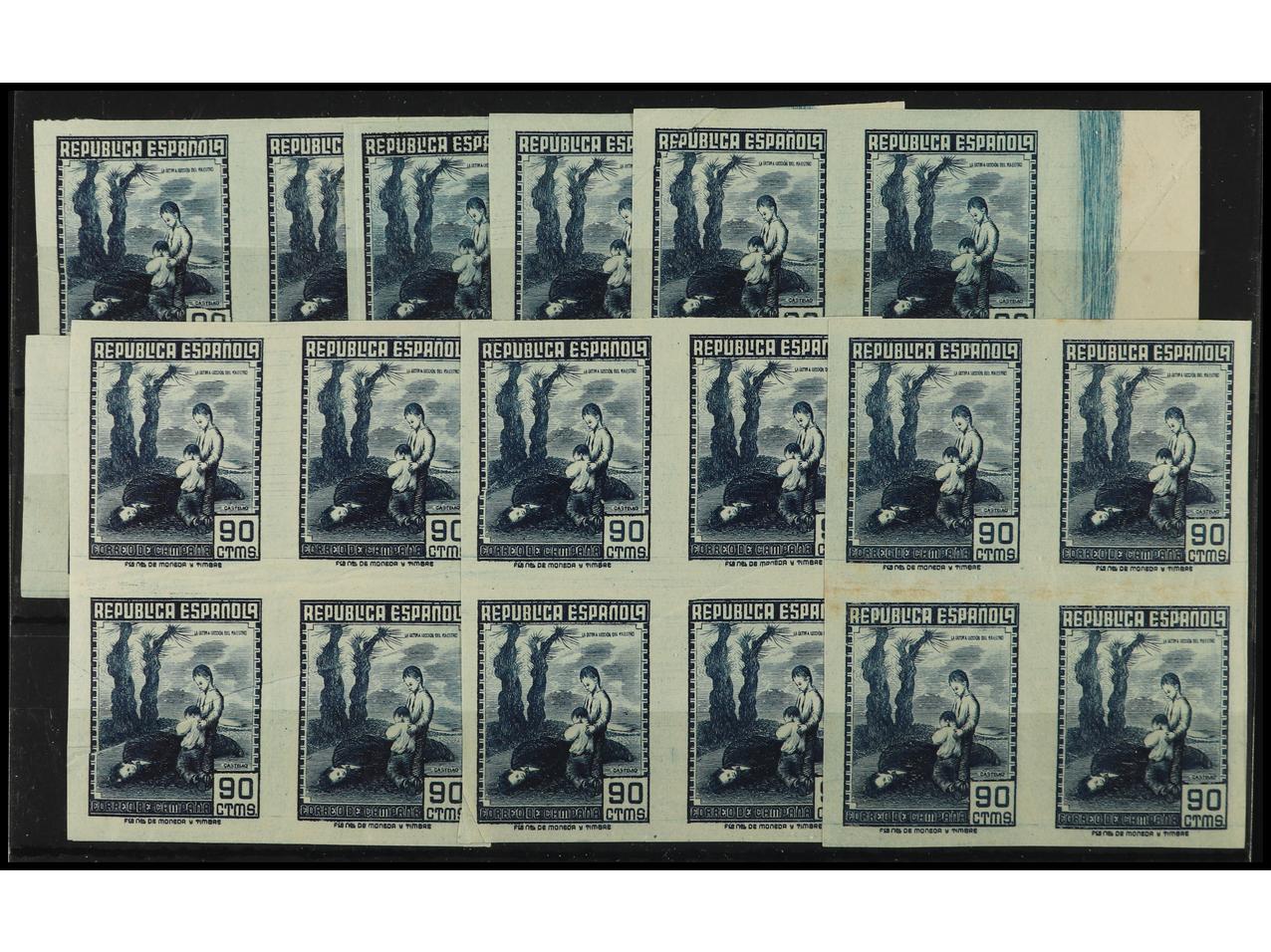 ESPAÑA. 90 cts. azul. 26 Sellos SIN DENTAR en parejas y bloques de 4. OCASIÓN. A EXAMINAR. Ed.NE54s(26). Cat. 700€. (Image1) (Image2)