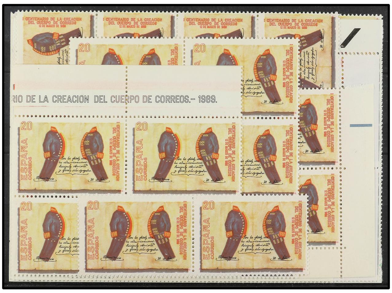 ESPAÑA. 20 pts. Variedad COLORES DESPLAZADOS. 70 sellos en bloques. Sellos sin fijasellos y perfectos. OCASIÓN. Ed.2998id. Cat. 3.500€. (Image1)