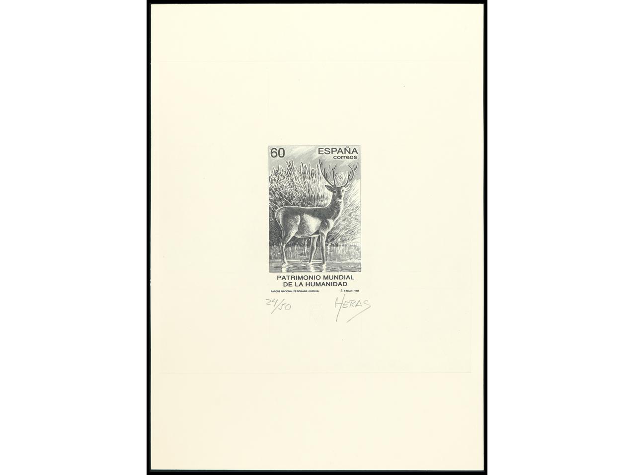ESPAÑA. PARQUE NACIONAL DE DOÑANA. PRUEBA DE ARTISTA firmada por el grabador. Tirada solo 50 ejemplares (esta 24/50). OCASIÓN. Ed.3455P. (Image1)