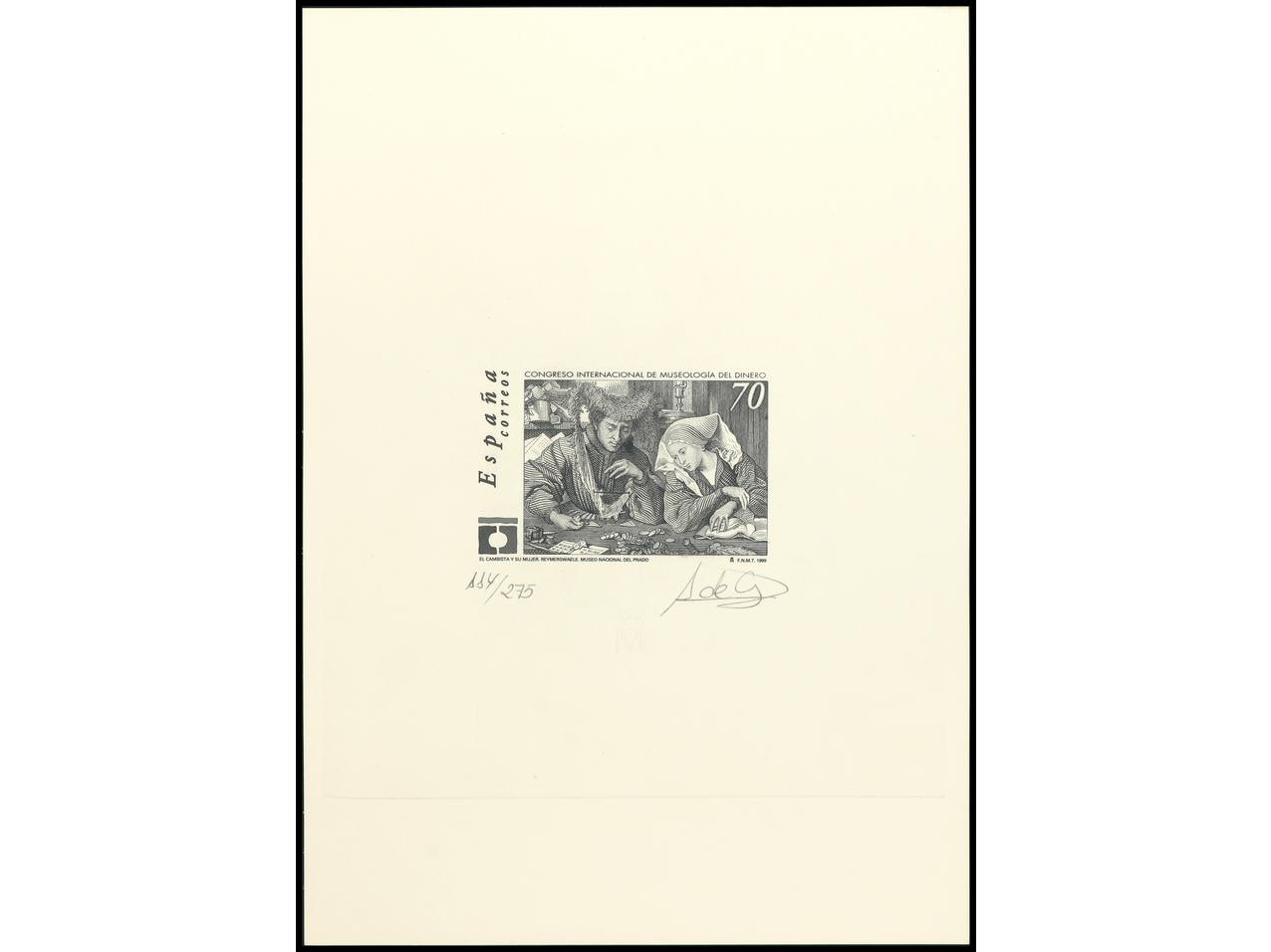 ESPAÑA. CONGRESO INTERNACIONAL DE MUSEOLOGÍA DEL DINERO. PRUEBA DE ARTISTA firmada por el grabador. Tirada 275 ejemplares (esta 114/275). OCASIÓN. Ed.3678P.