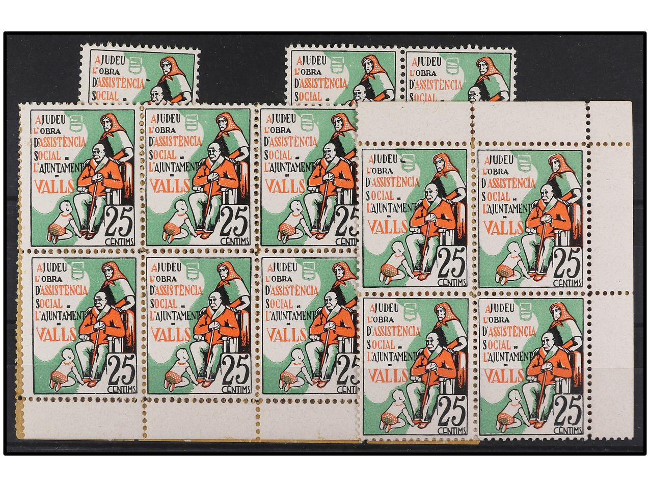 ESPAÑA GUERRA CIVIL. VALLS. 25 cts. rojo, verde y negro. 27 sellos sueltos y en bloques. Allepuz 3. (Image1)