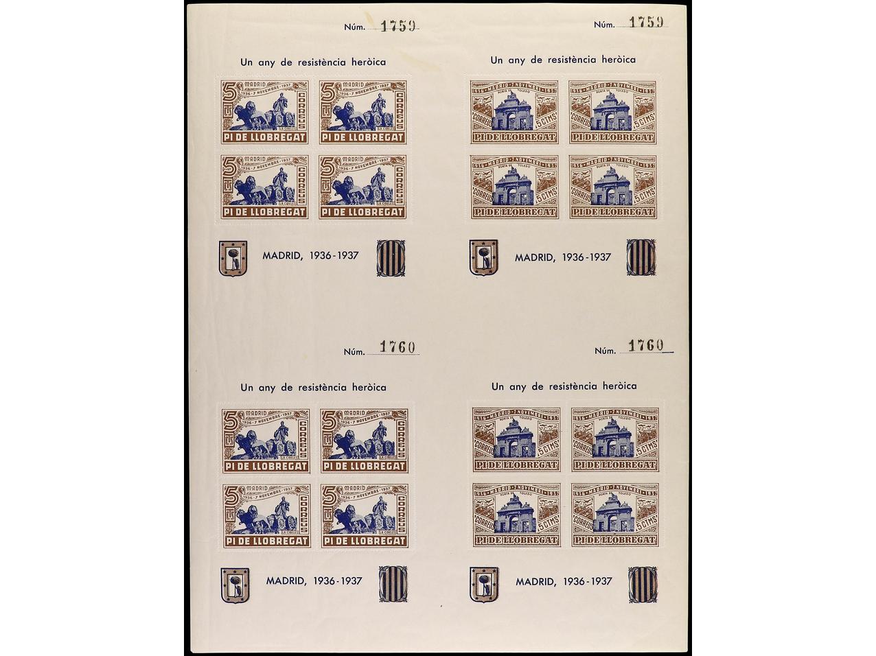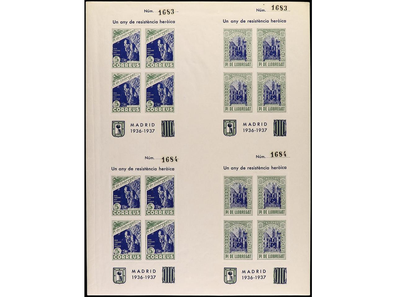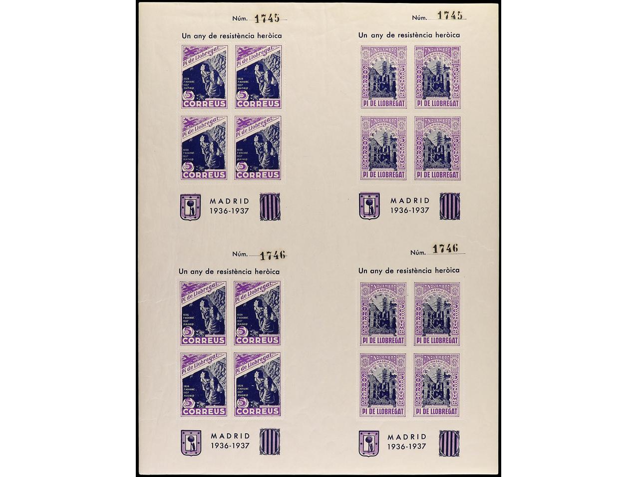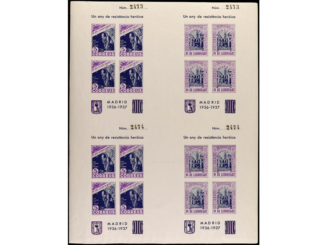 ESPAÑA GUERRA CIVIL. PI DE LLOBREGAT. Series completas de 4 pliegos cada una con 4 hojitas, 2 dentadas en zig-zag y 2 sin dentar. RARAS. Allepuz 36/9 y 52/5. Foto en web. (Image1) (Image2)