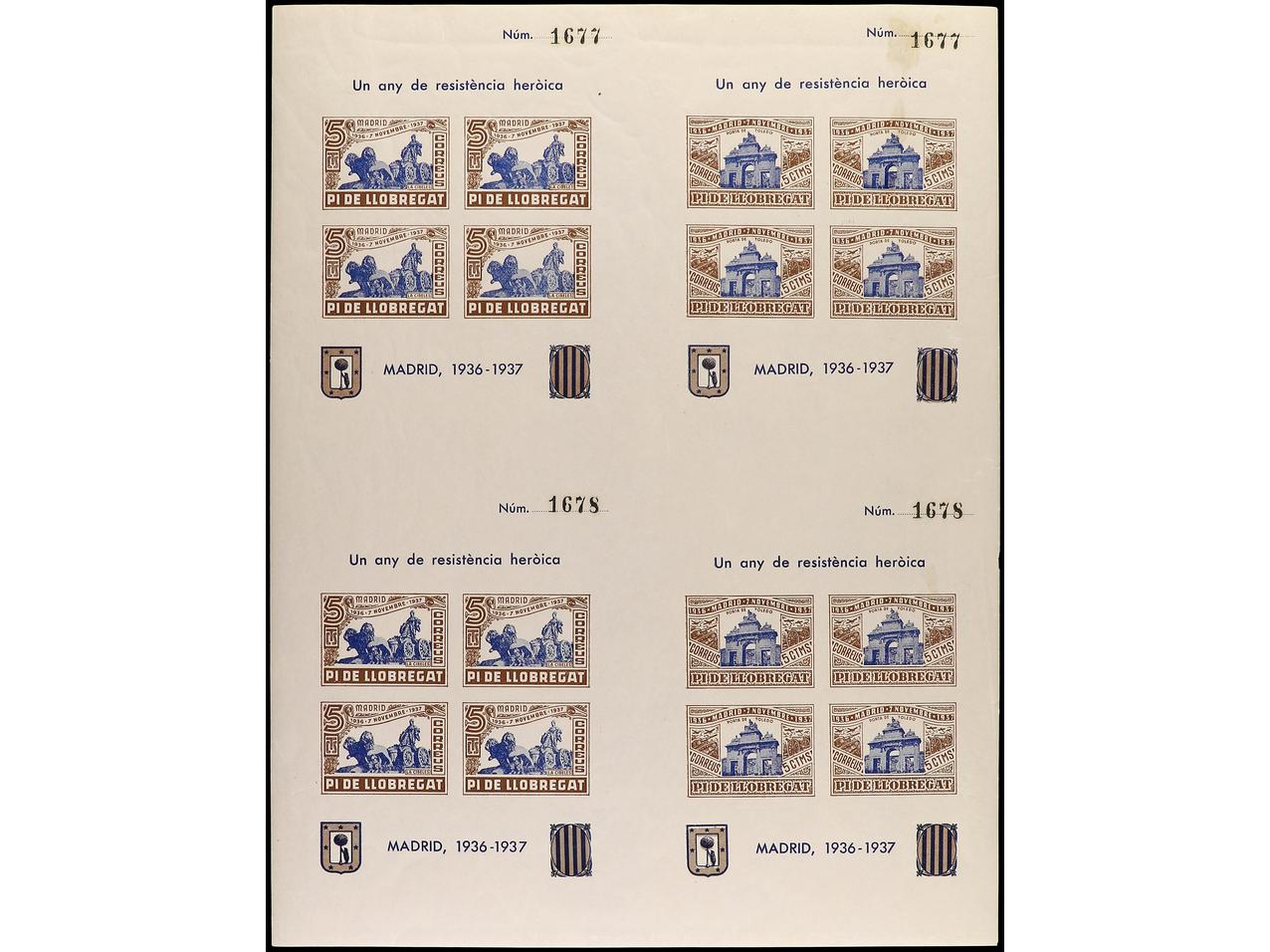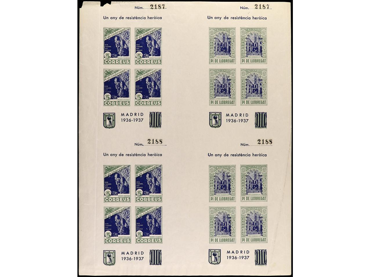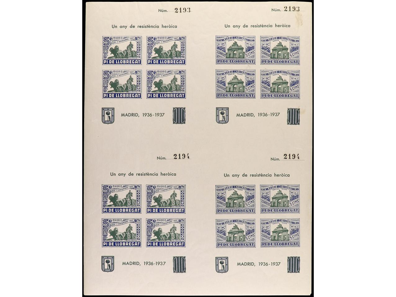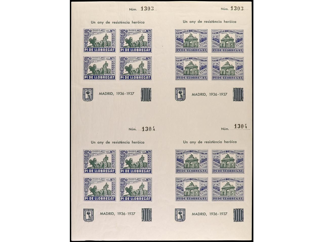 ESPAÑA GUERRA CIVIL. PI DE LLOBREGAT. Series completas de 4 pliegos cada una con 4 hojitas, 2 dentadas en zig-zag y 2 sin dentar. RARAS. Allepuz 36/9 y 52/5. Foto en web. (Image1) (Image2)