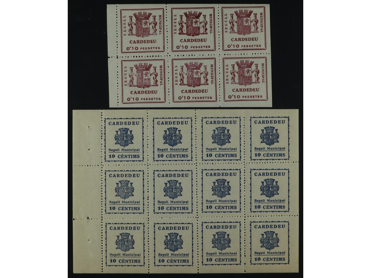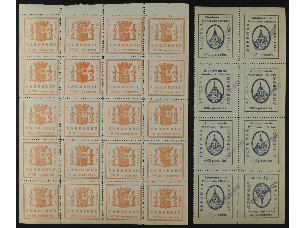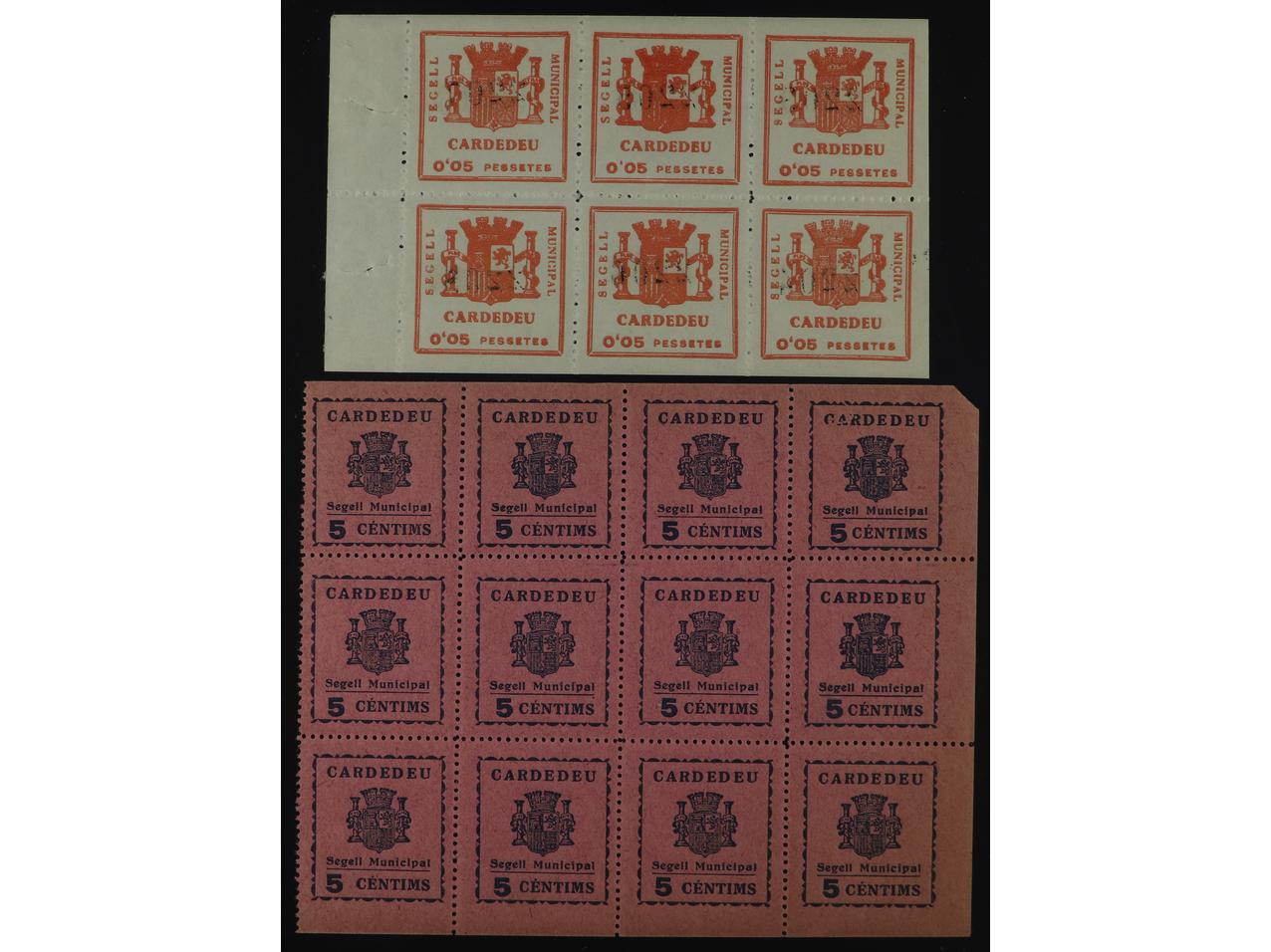 ESPAÑA GUERRA CIVIL. CARDEDEU. Hojas de clasificador con sellos en bloques. Incluye otro bloque de MONTCADA I REIXAC. OCASIÓN. A EXAMINAR. (Image1)