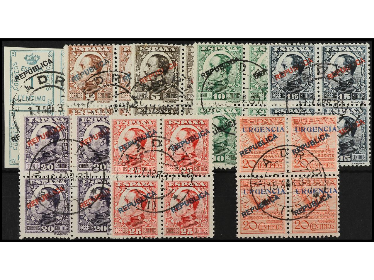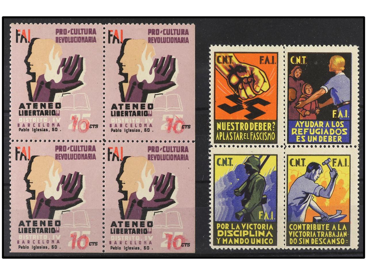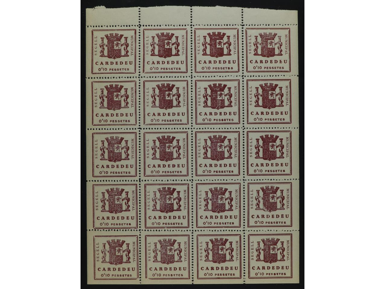 ESPAÑA GUERRA CIVIL. CARDEDEU. Hojas de clasificador con sellos en bloques. Incluye otro bloque de MONTCADA I REIXAC. OCASIÓN. A EXAMINAR. (Image1)