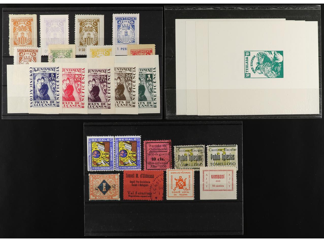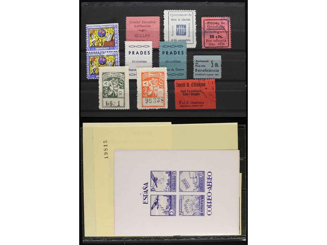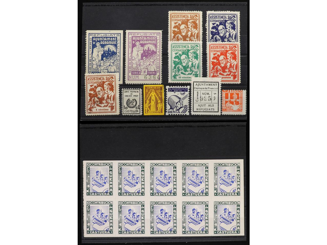 ESPAÑA GUERRA CIVIL. CONJUNTO montado en ficha conteniendo 19 sellos y 2 carnets en nuevo. HAY RARAS. A EXAMINAR. (Image1) (Image2)