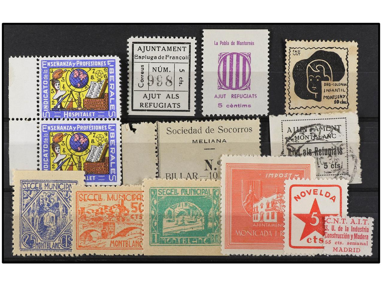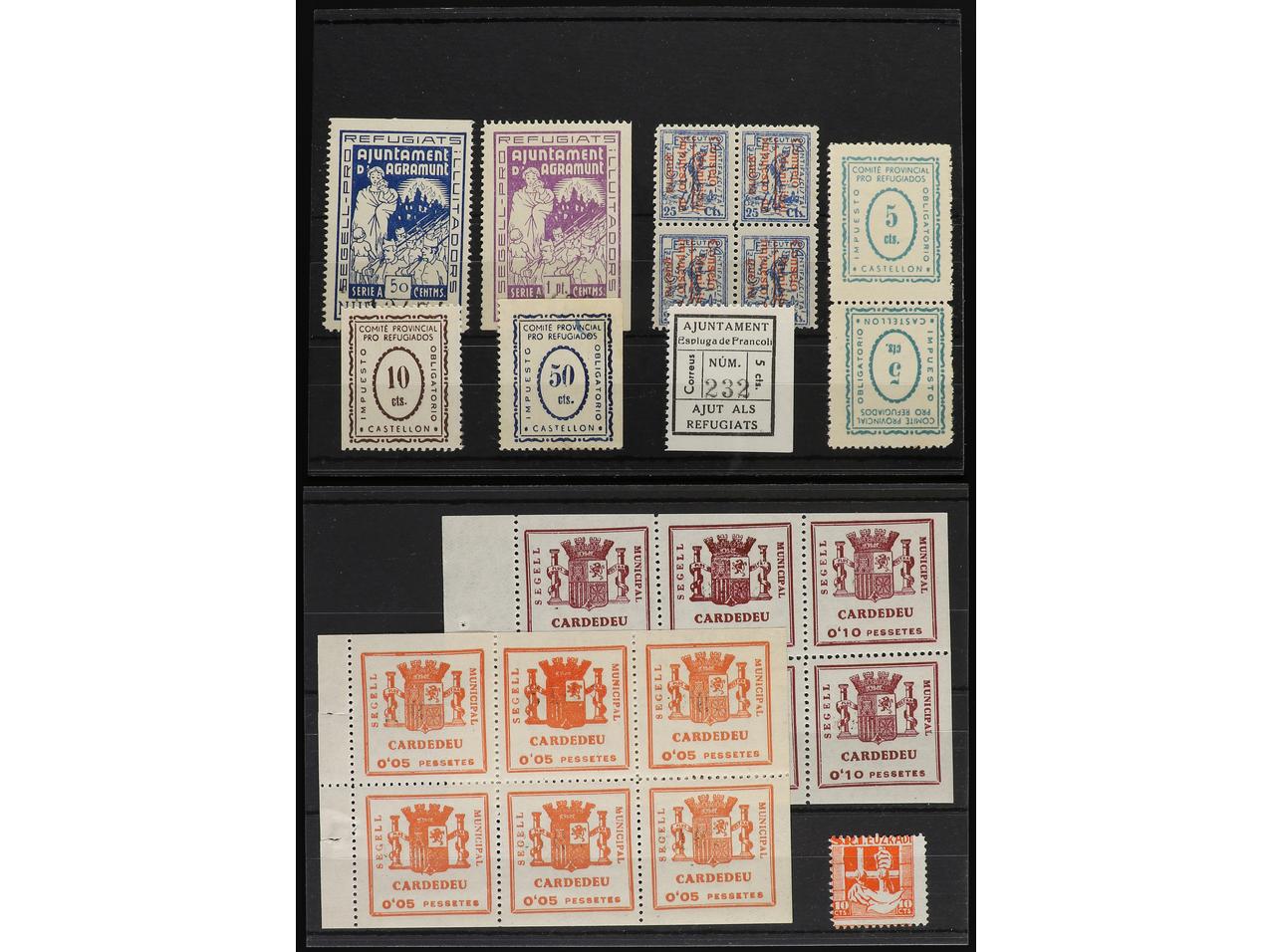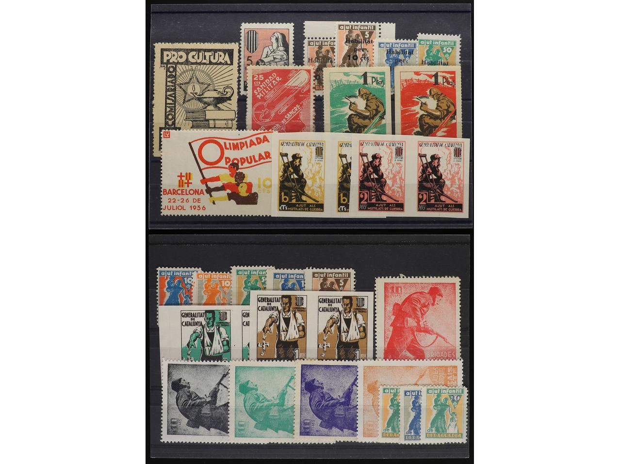 ESPAÑA GUERRA CIVIL. CONJUNTO montado en ficha conteniendo 19 sellos y 2 carnets en nuevo. HAY RARAS. A EXAMINAR. (Image1) (Image2)
