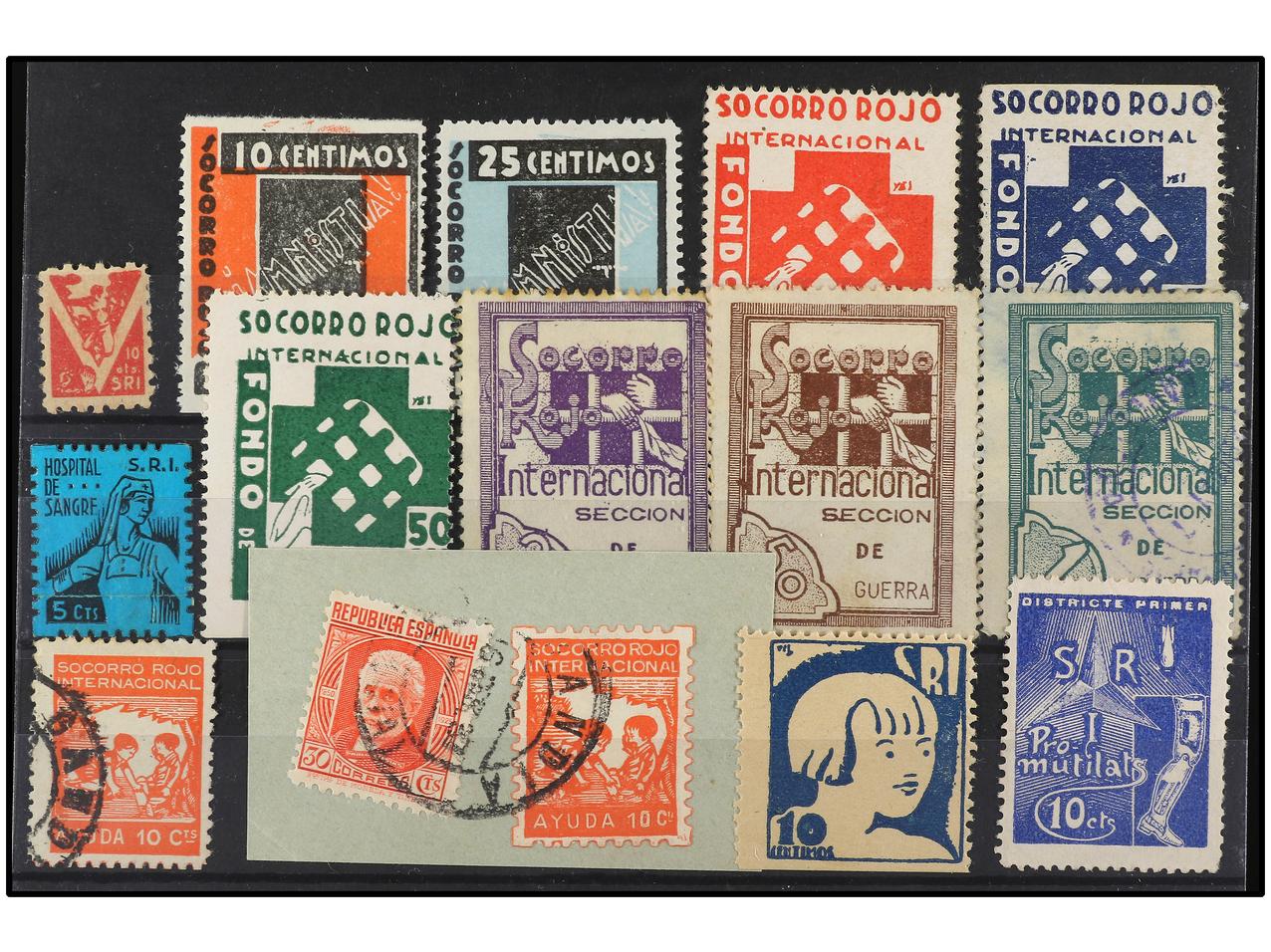 ESPAÑA GUERRA CIVIL. VIÑETAS POLÍTICAS. ZONA REPUBLICANA. SOCORRO ROJO INTERNACIONAL. Ficha conteniendo 14 viñetas mayoría en nuevo. RARO CONJUNTO.