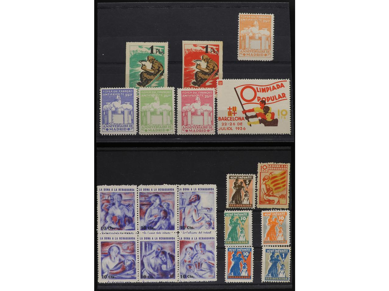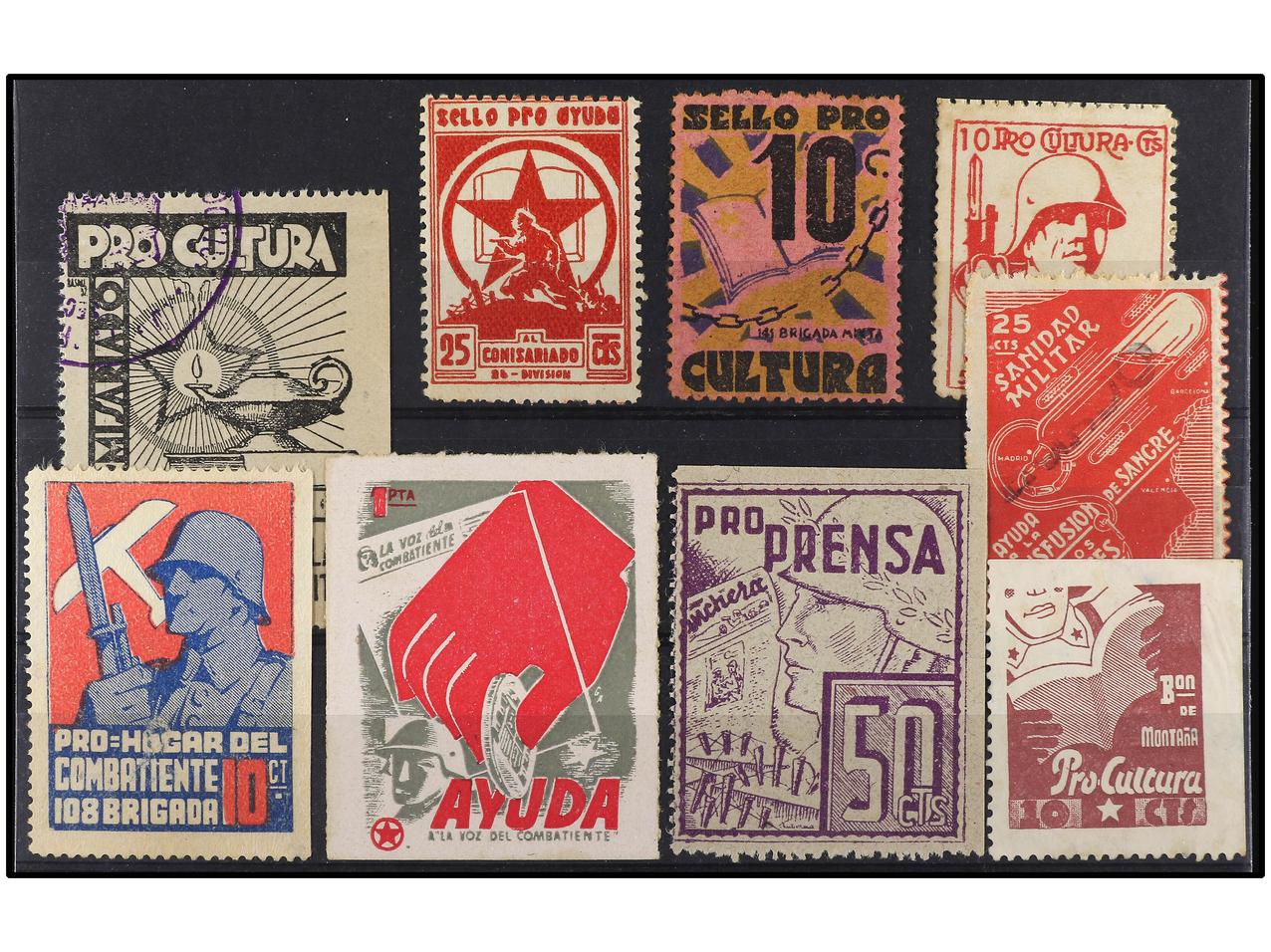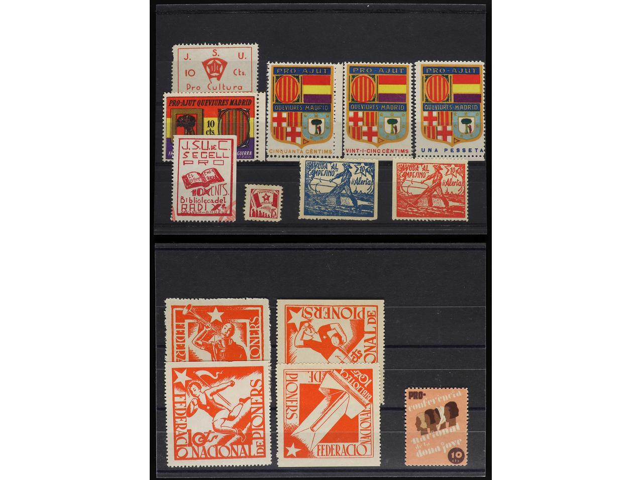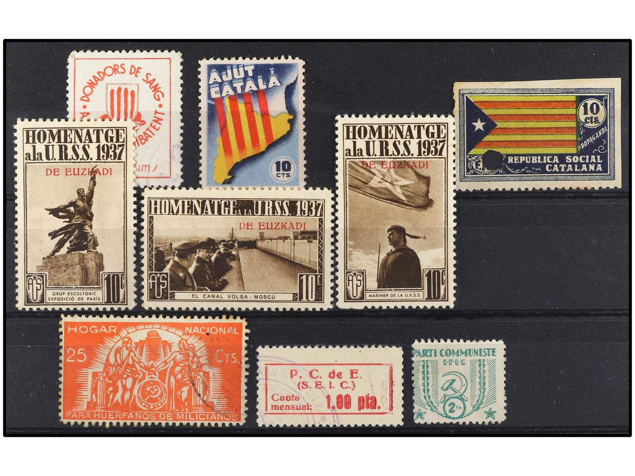 ESPAÑA GUERRA CIVIL. VIÑETAS POLÍTICAS. Conjunto montado en ficha conteniendo 9 viñetas en nuevo o usado y 1 carta. Incluye 1 ejemplar no reseñado.