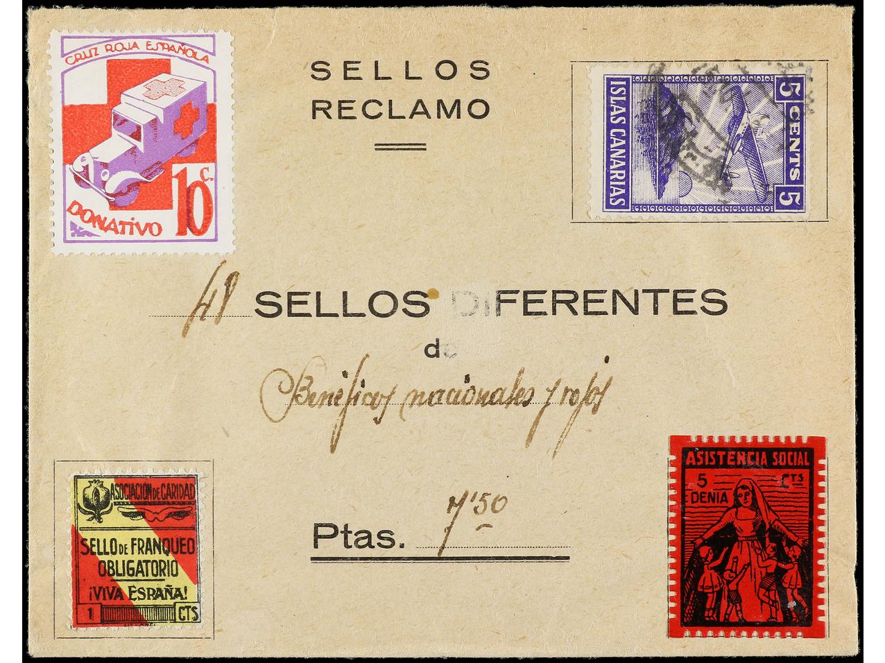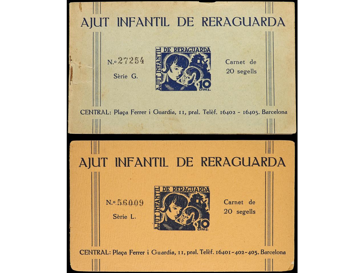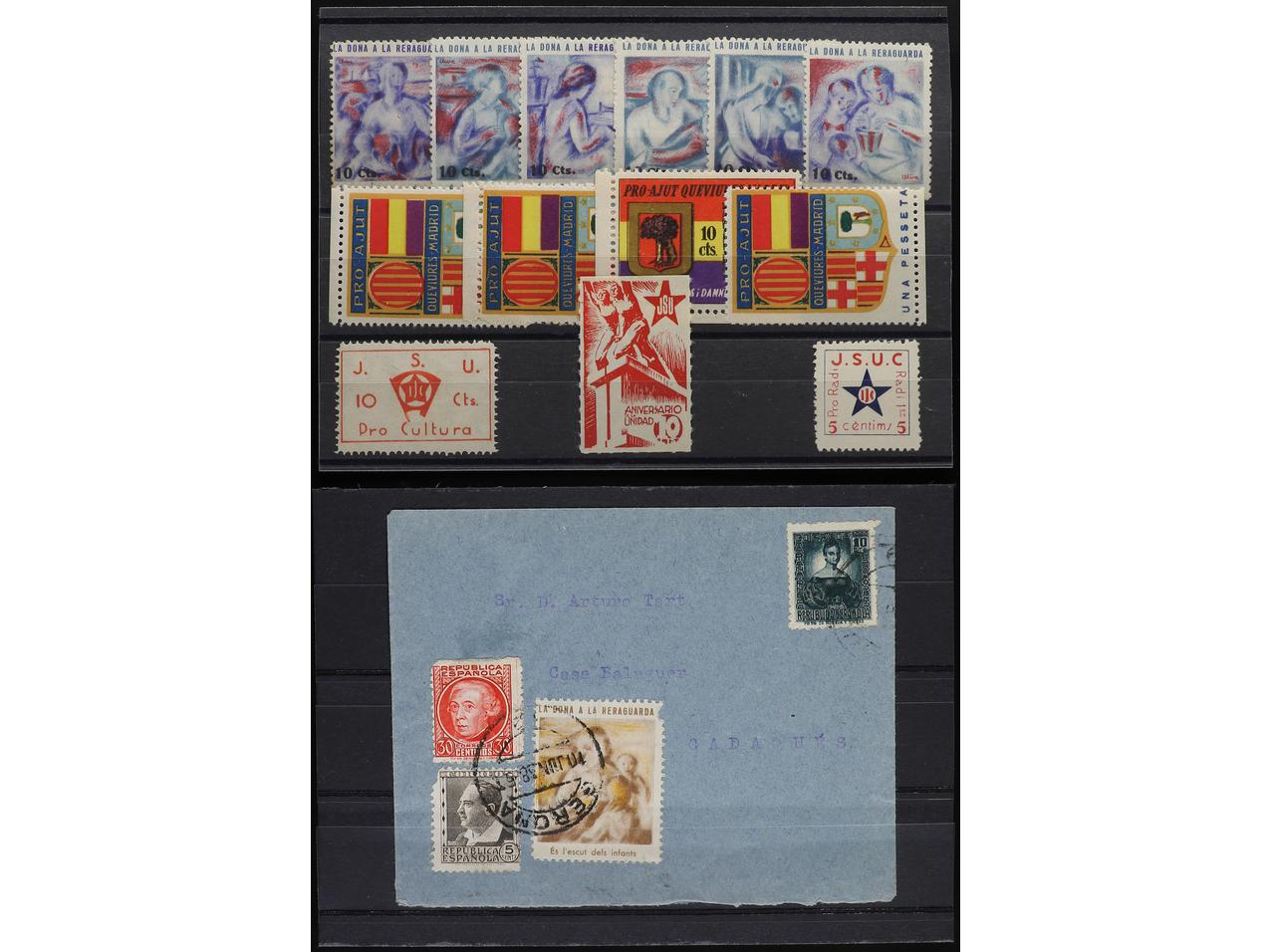 ESPAÑA GUERRA CIVIL. CONJUNTO montado en fichas formado por 13 viñetas, 1 carnet y 1 carta. A EXAMINAR. (Image1) (Image2)