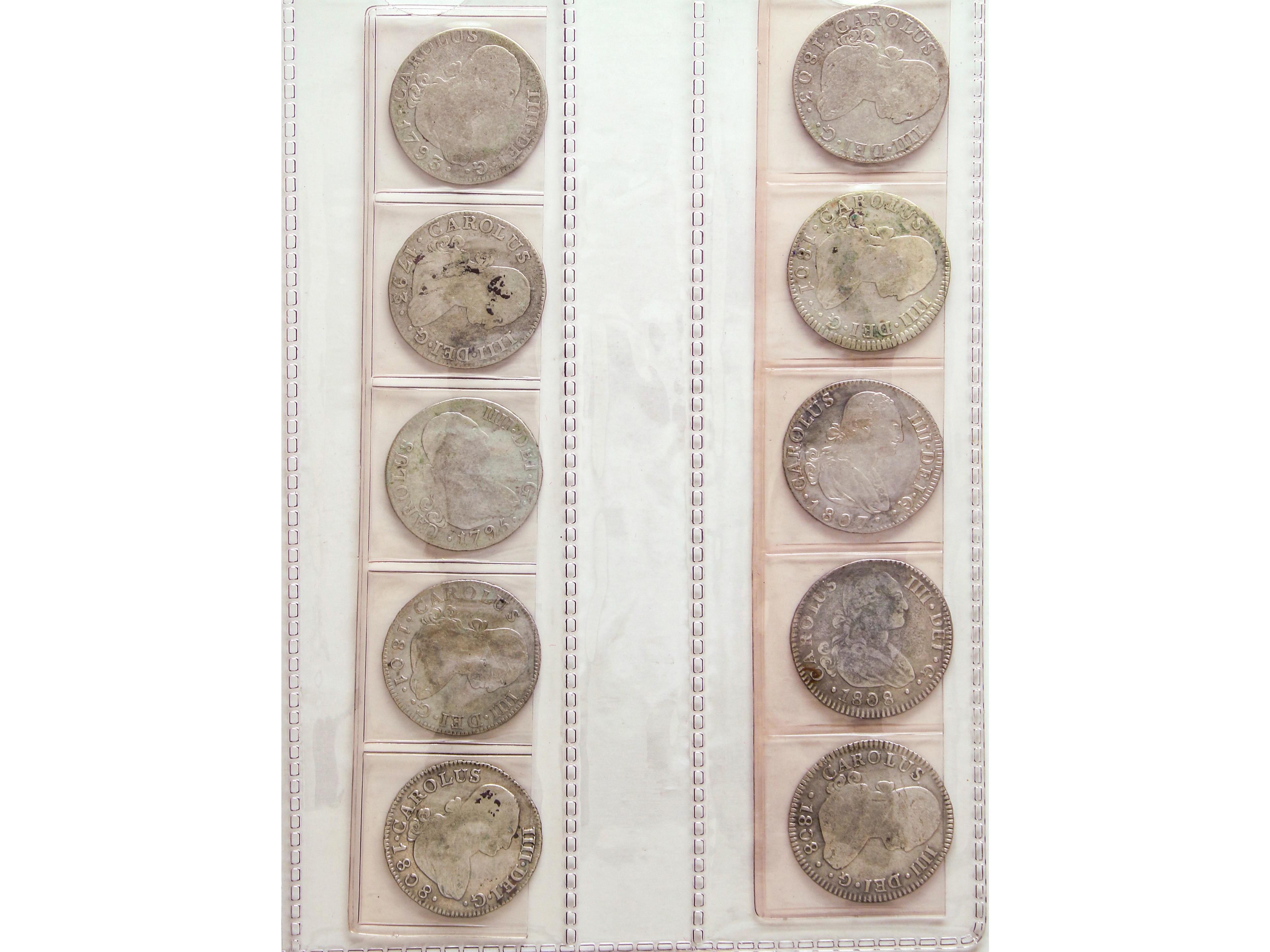 Lote 10 monedas 2 Reales. 1793 a 1808. MADRID (6), SEVILLA (4). A EXAMINAR. AC-600 (2), 603, 610, 612, 619, 722, 727, 728 (2). BC a MBC-. (Image1) (Image2)