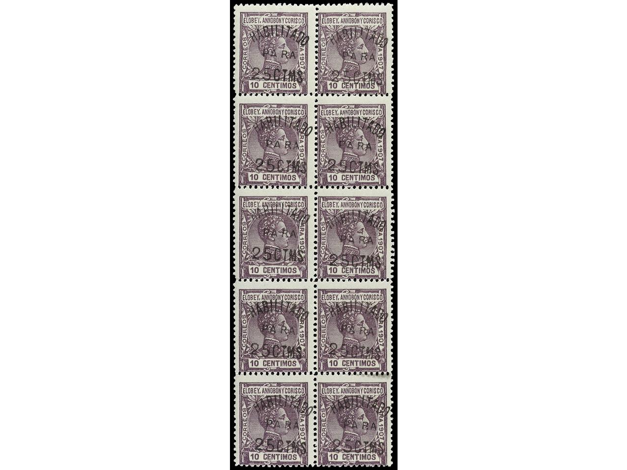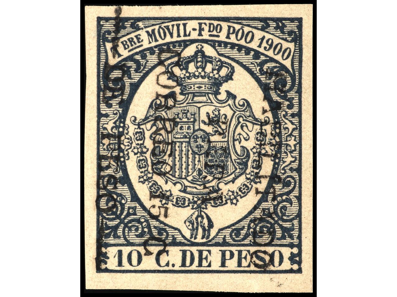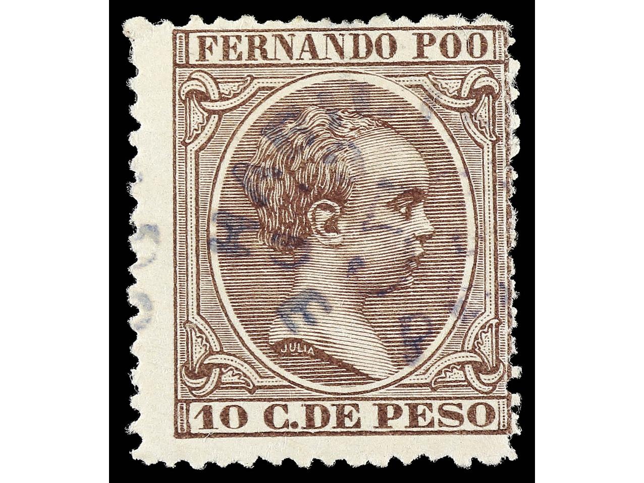 COLONIAS ESPAÑOLAS: FERNANDO POO. 10 cts. azul con HAB. VERTICAL EN NEGRO. Cert. GRAUS. PRECIOSO. MUY RARO. Ed.48E. Cat. 1.940€. (Image1)