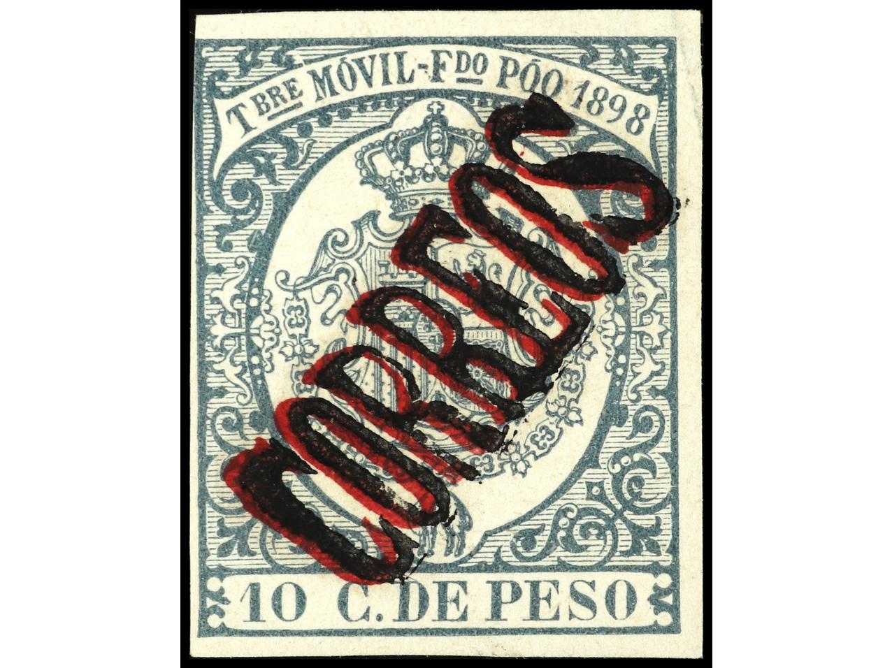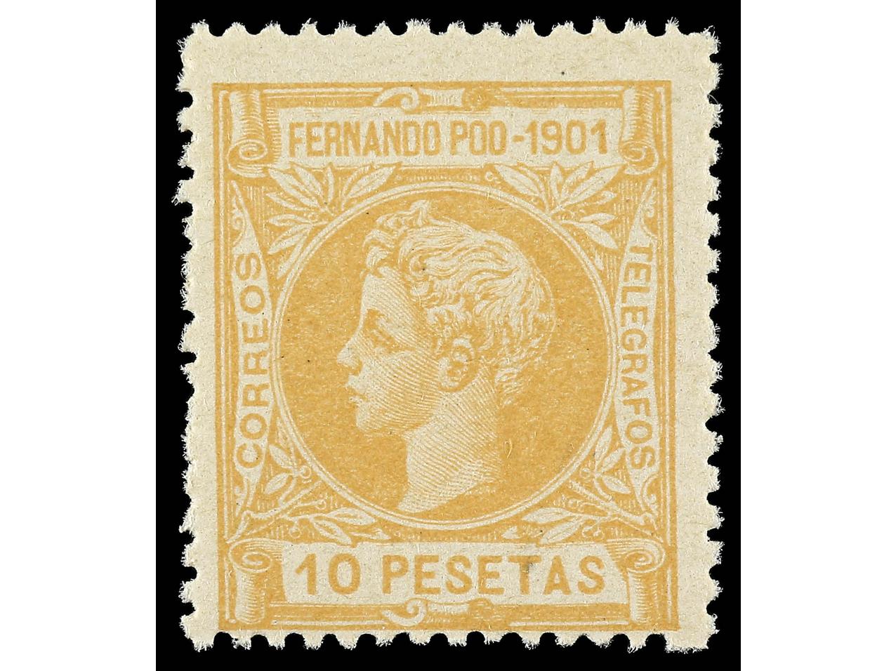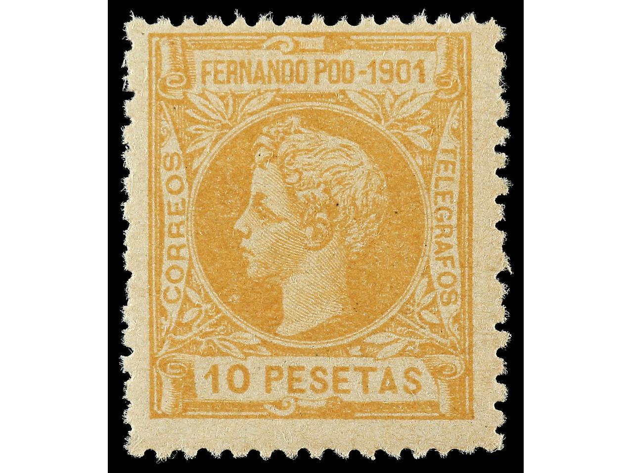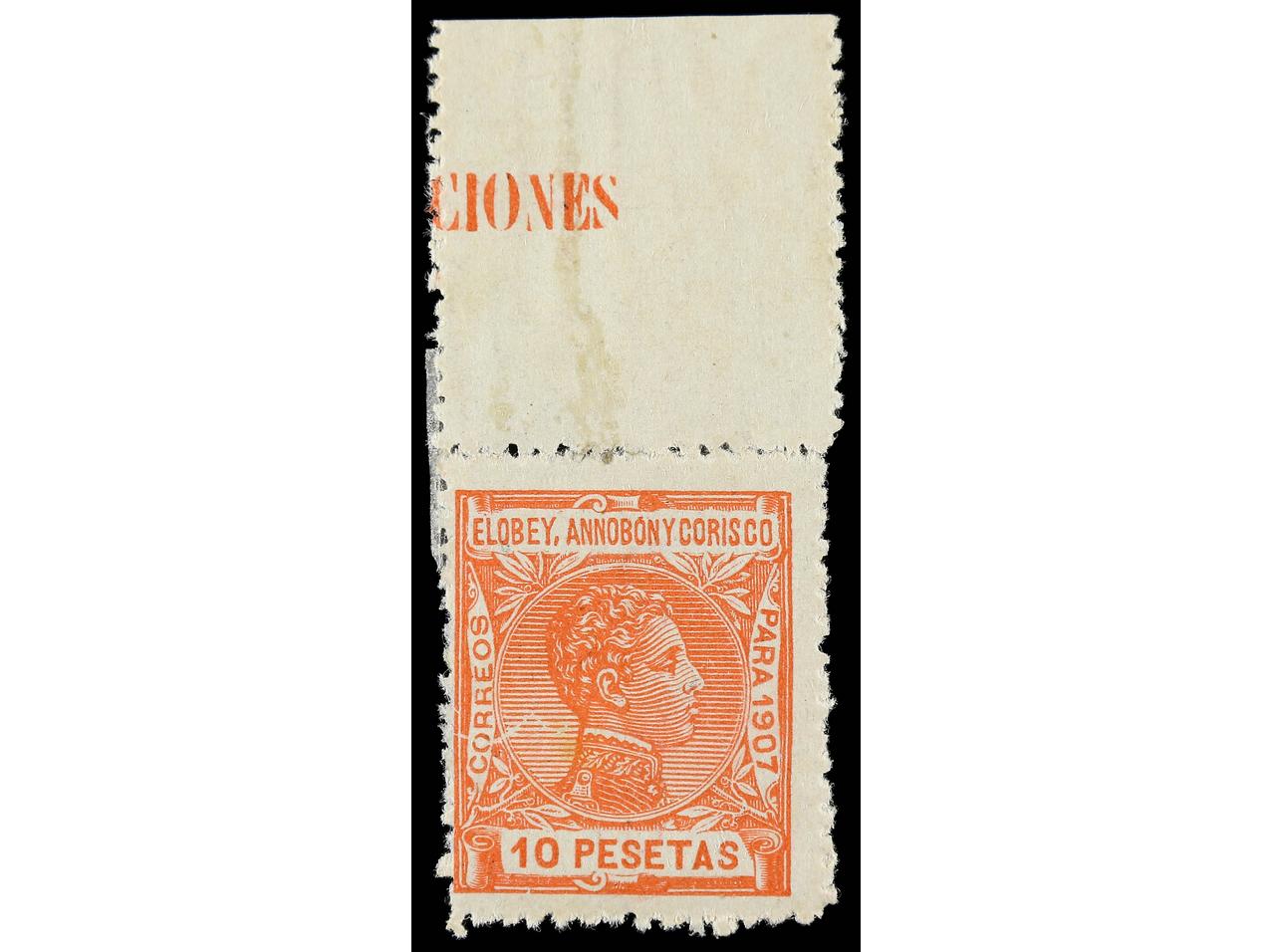 COLONIAS ESPAÑOLAS: FERNANDO POO. 10 cts. azul con HAB. VERTICAL EN NEGRO. Cert. GRAUS. PRECIOSO. MUY RARO. Ed.48E. Cat. 1.940€. (Image1)