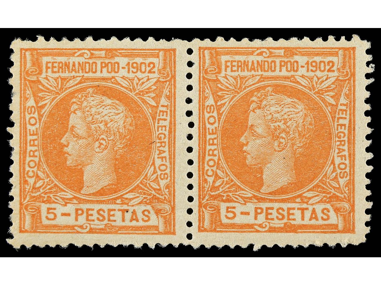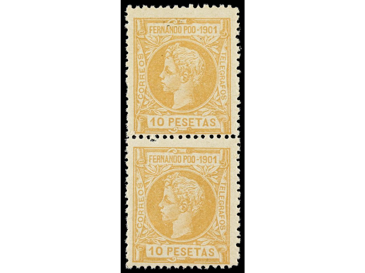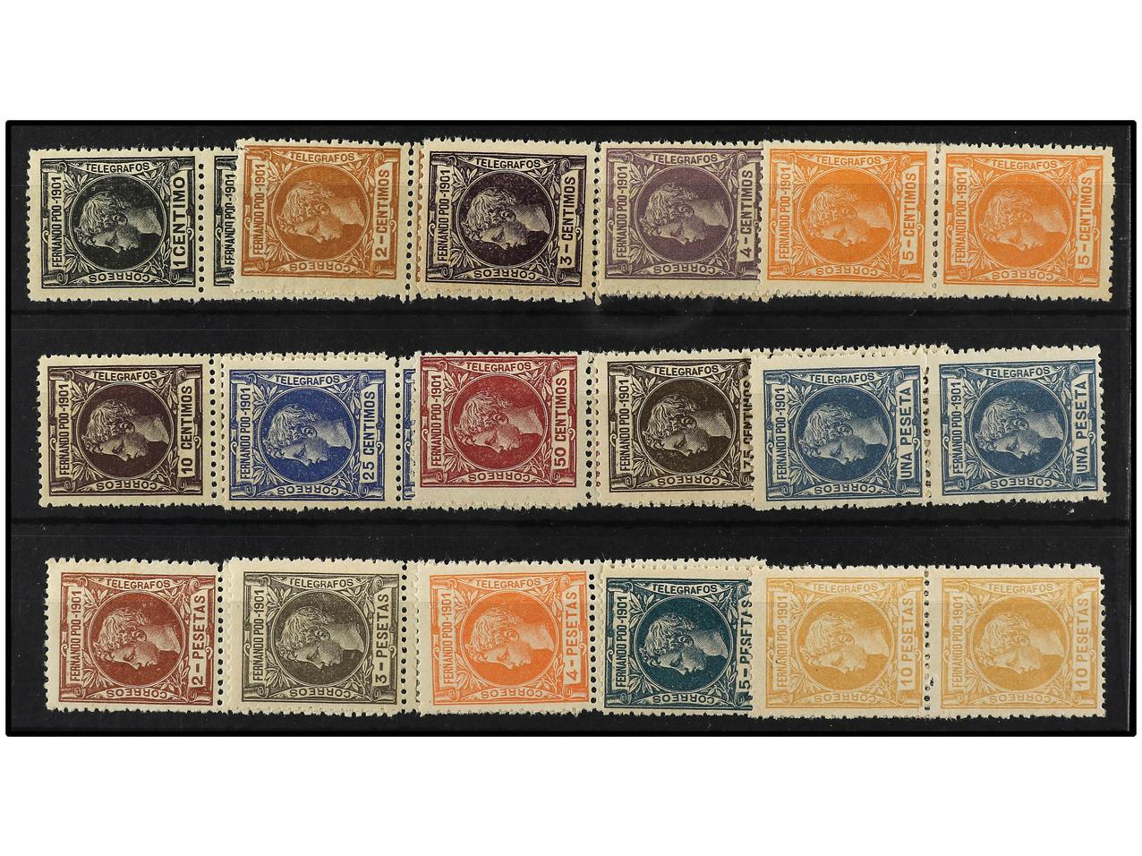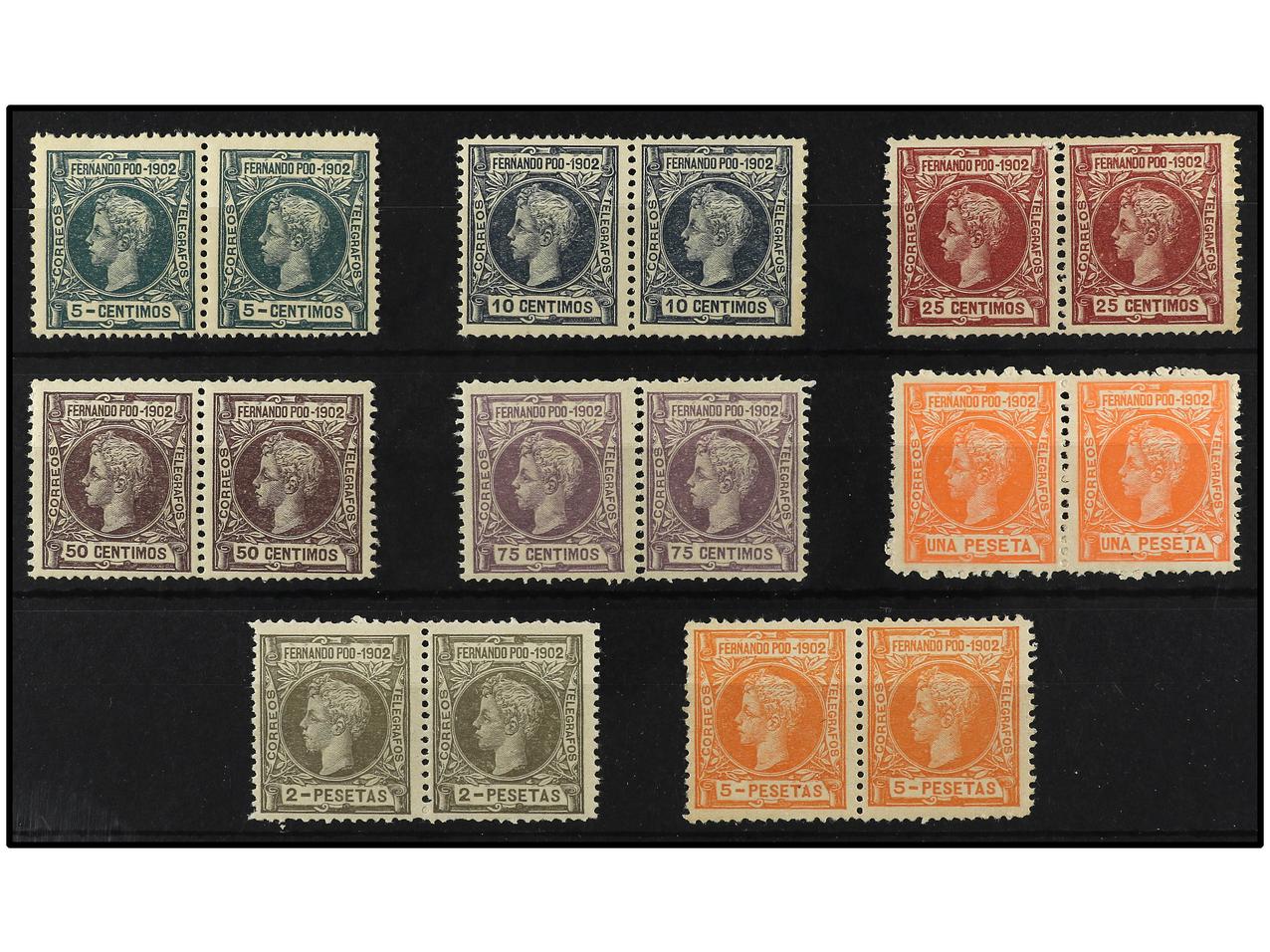COLONIAS ESPAÑOLAS: FERNANDO POO. 2 SERIES COMPLETAS. 15 valores en parejas verticales. RARA sin fijasellos. En general buena calidad. EXAMINAR. Ed.95/109 (2). Cat. 1.400€. (Image1) (Image2)