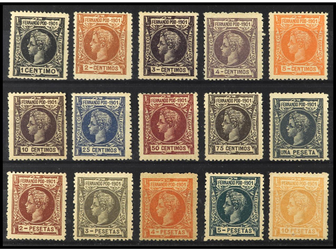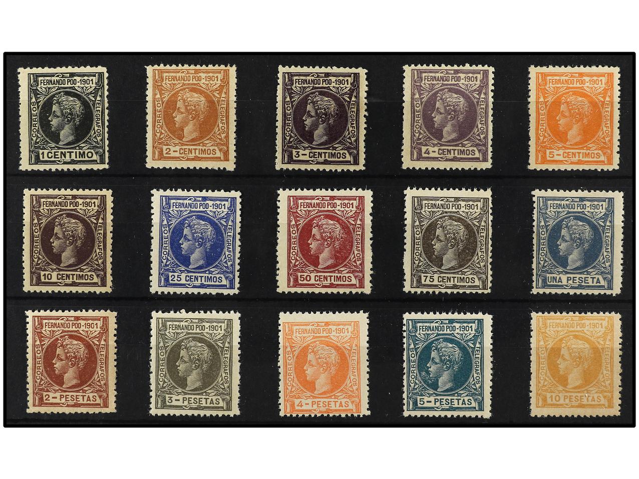 COLONIAS ESPAÑOLAS: FERNANDO POO. SERIE COMPLETA, 15 valores. RARA sin fijasellos. En general buena calidad. EXAMINAR. Ed.95/109. Cat. 700€. (Image1)