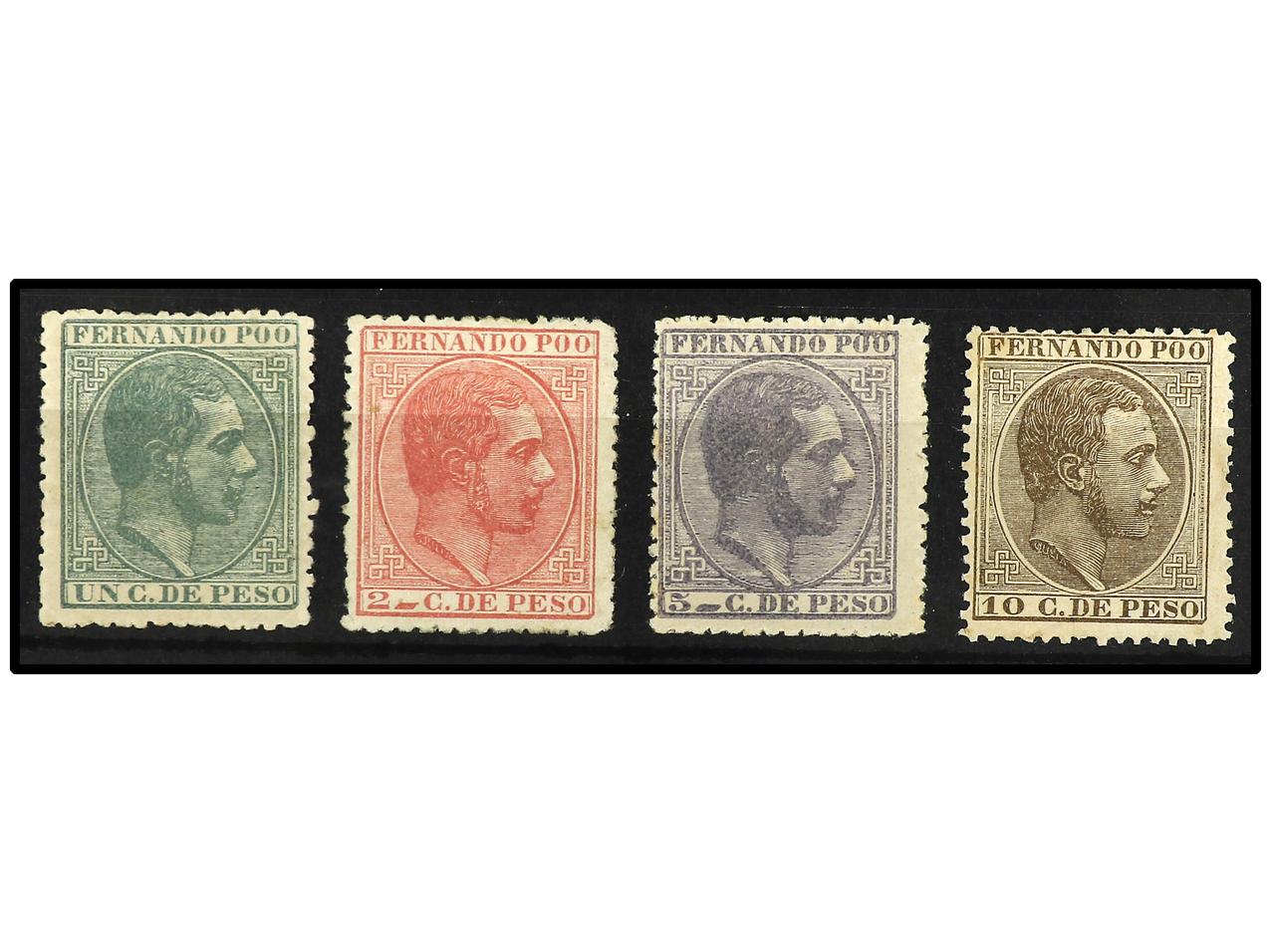 COLONIAS ESPAÑOLAS: FERNANDO POO. SERIE COMPLETA, 4 valores. Ejemplares corrientes. 10 cts. sin goma. A EXAMINAR. Ed.5/8. Cat. 255€. (Image1) (Image2)