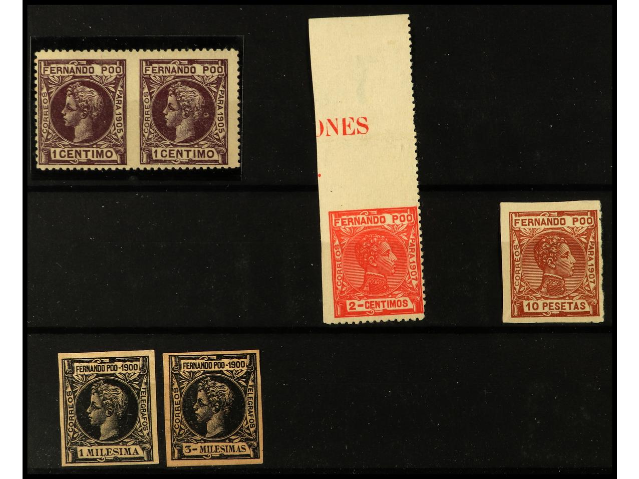 COLONIAS ESPAÑOLAS: FERNANDO POO. 1899-1907. Conjunto de VARIEDAES dentadas y SIN DENTAR. OCASIÓN. A EXAMINAR. Ed.51s/4s y 66s. Cat. 600€. (Image1)