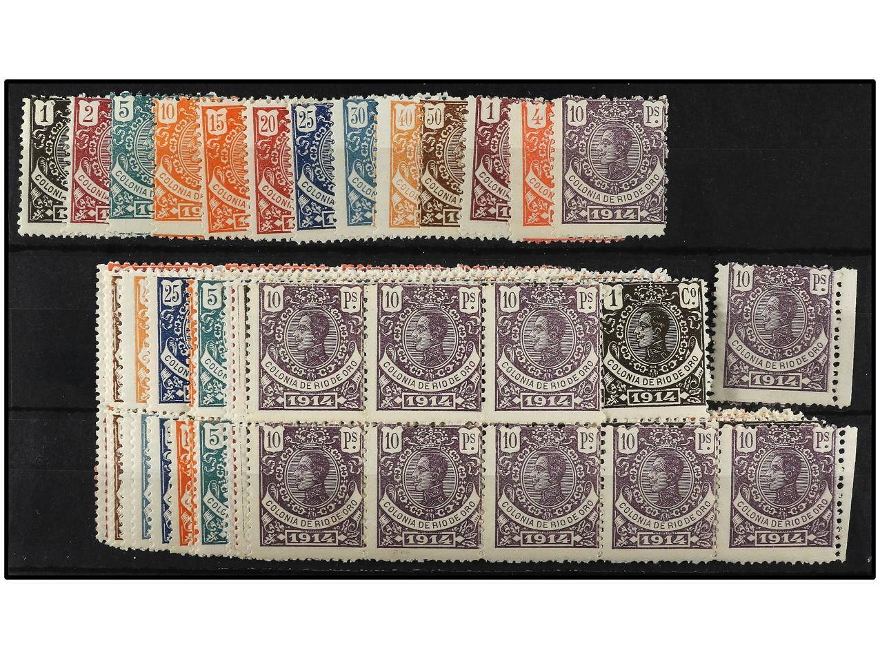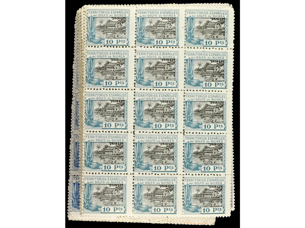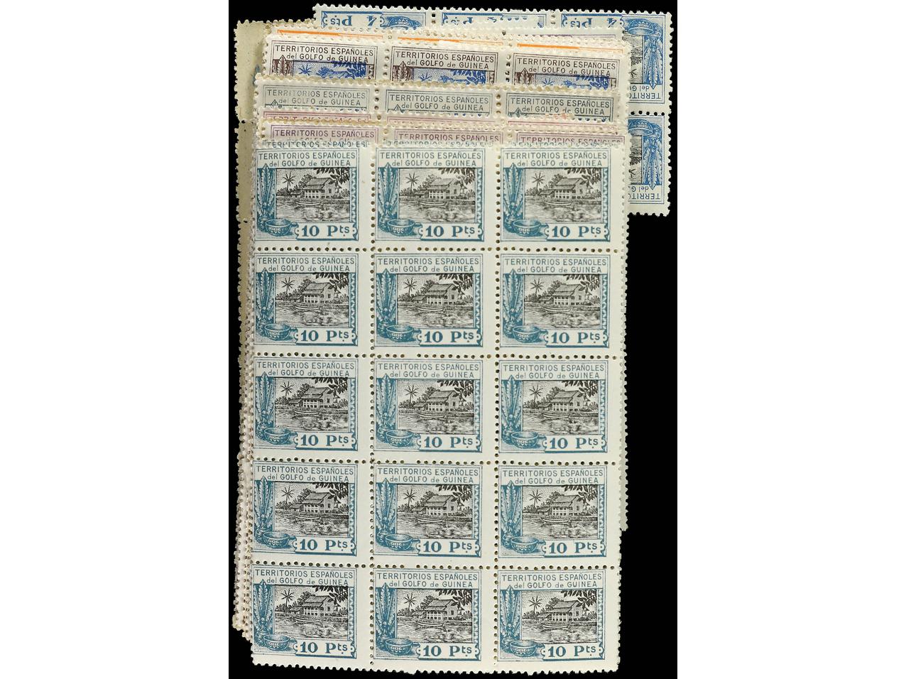 COLONIAS ESPAÑOLAS: GUINEA. 50 SERIES COMPLETAS. 12 valores. Mayoría en bloques. Algún valor goma alterada. EXAMINAR. Ed.167/78 (50). Cat. 2.400€.
