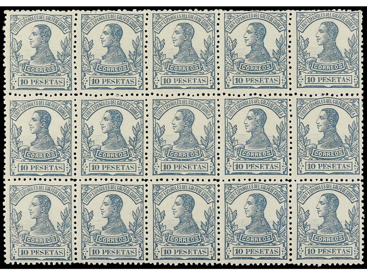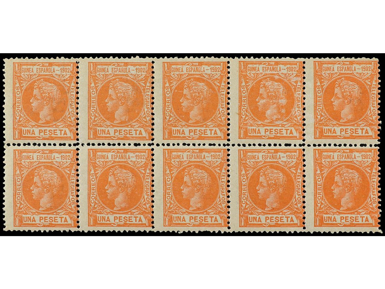 COLONIAS ESPAÑOLAS: GUINEA. 1 pta. rosa. Bloque de 10 sellos. EXAMINAR. Ed.6 (10). Cat. 4.000€. (Image1)