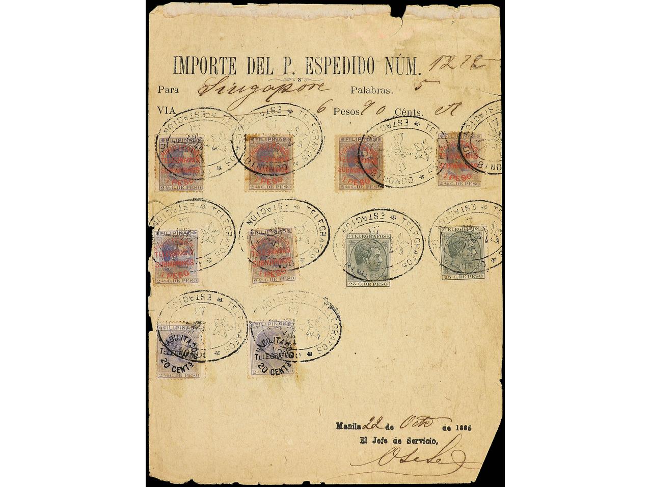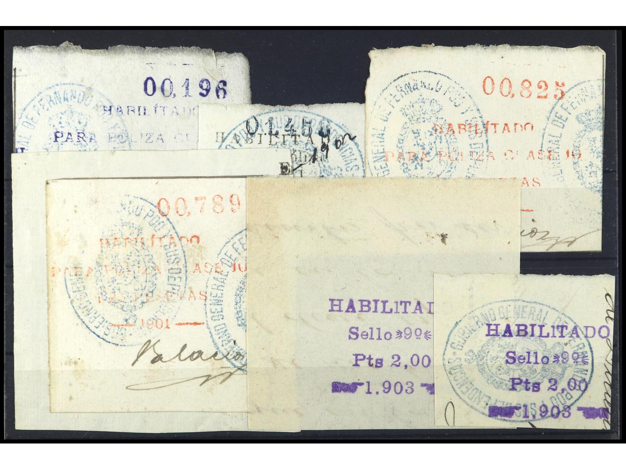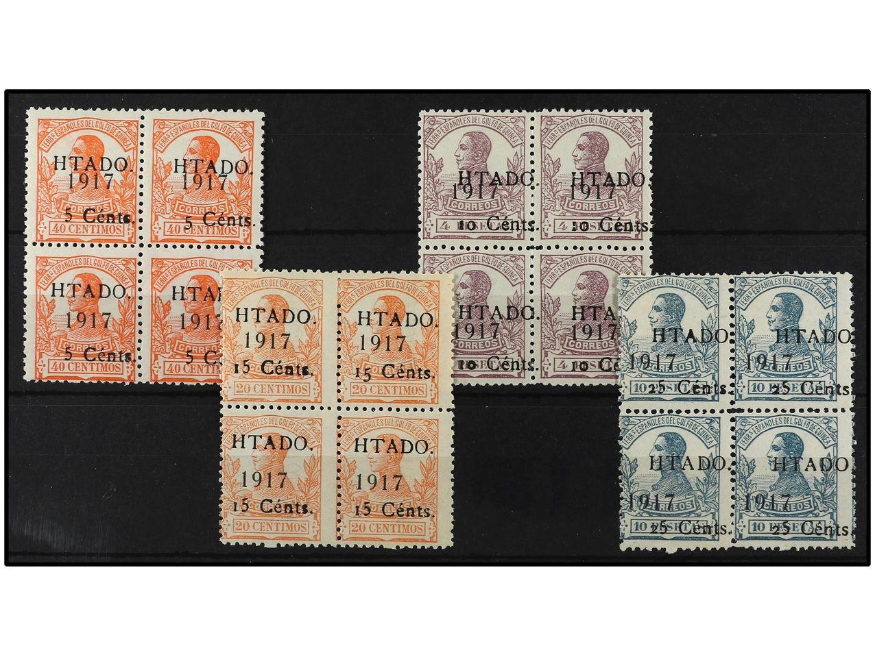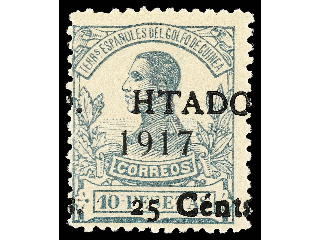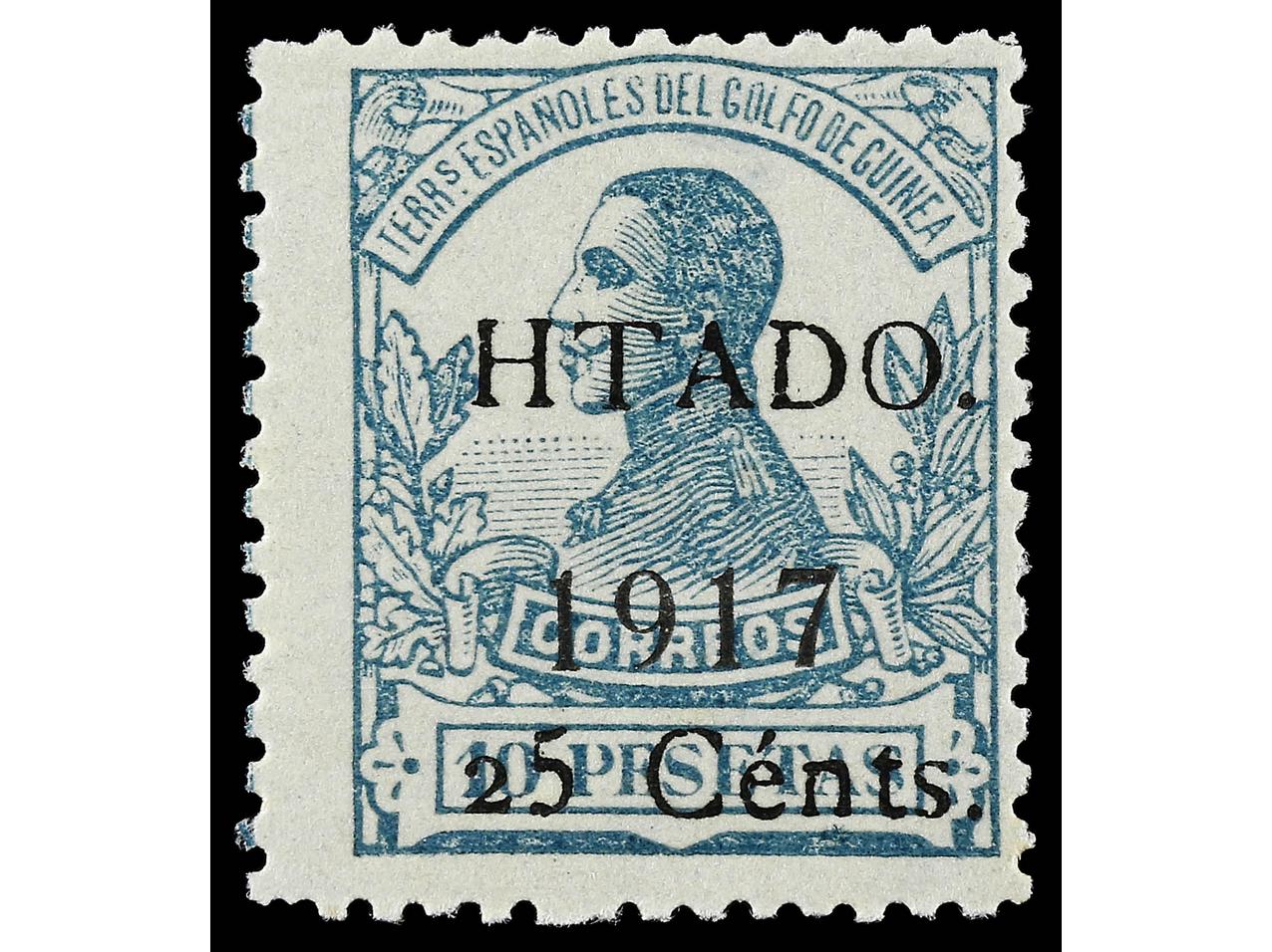 COLONIAS ESPAÑOLAS: GUINEA. SERIE COMPLETA a falta del 20 y 40 cts. 9 valores con habilitación INVERTIDA. Muy bonita y rara. Ed.113/23hi sin 116 y 119hi. Cat. 561€. (Image1) (Image2)
