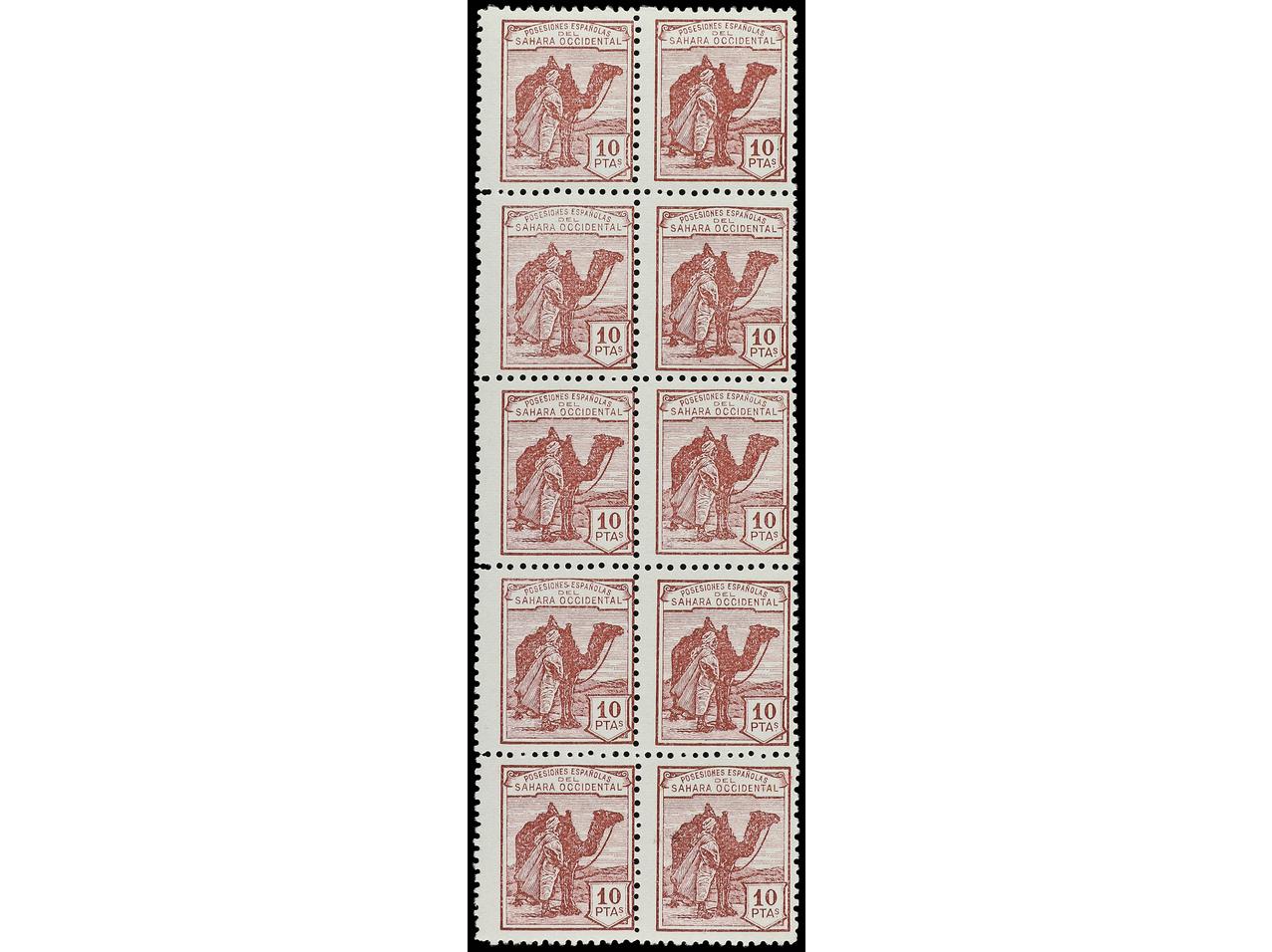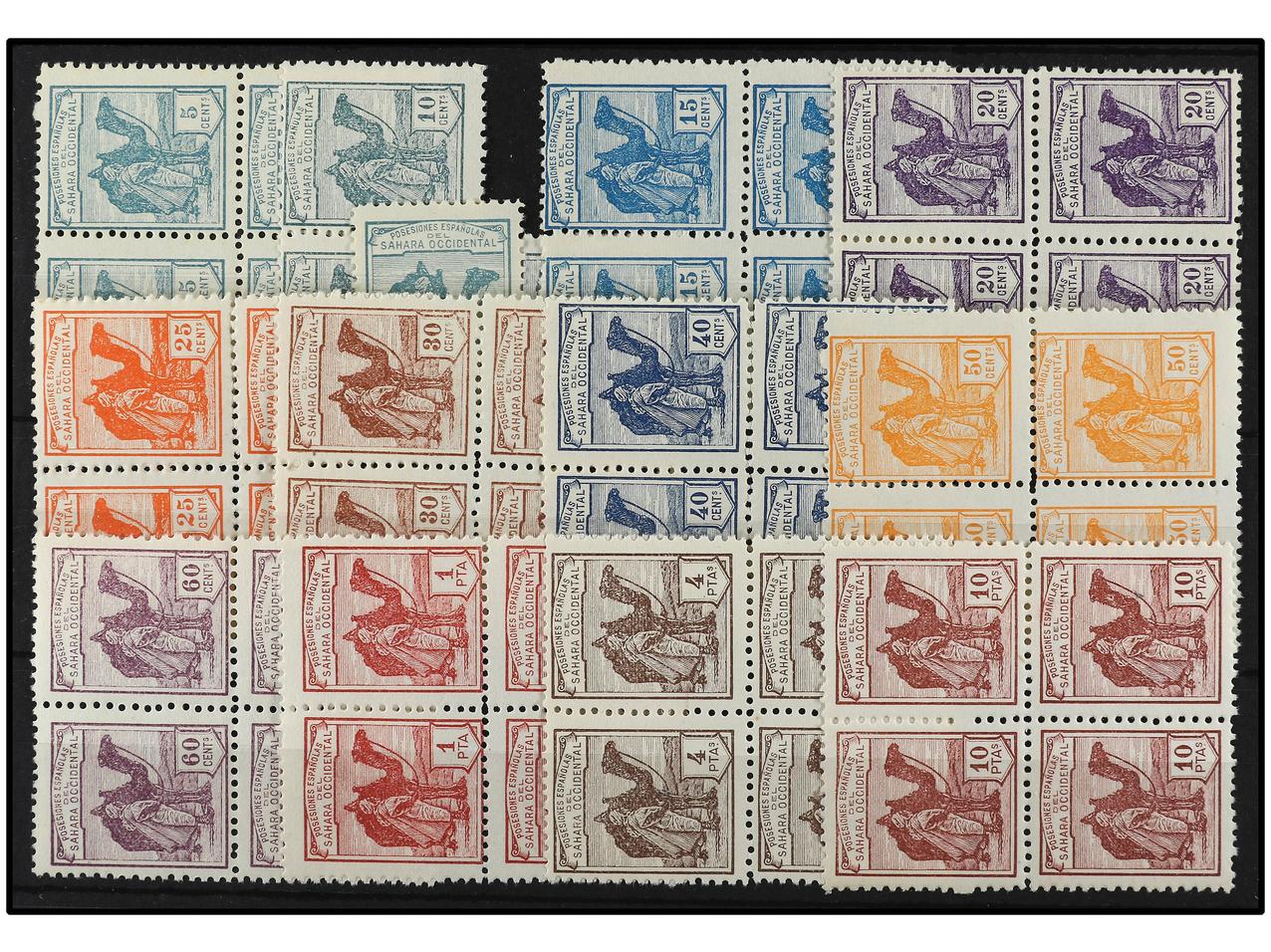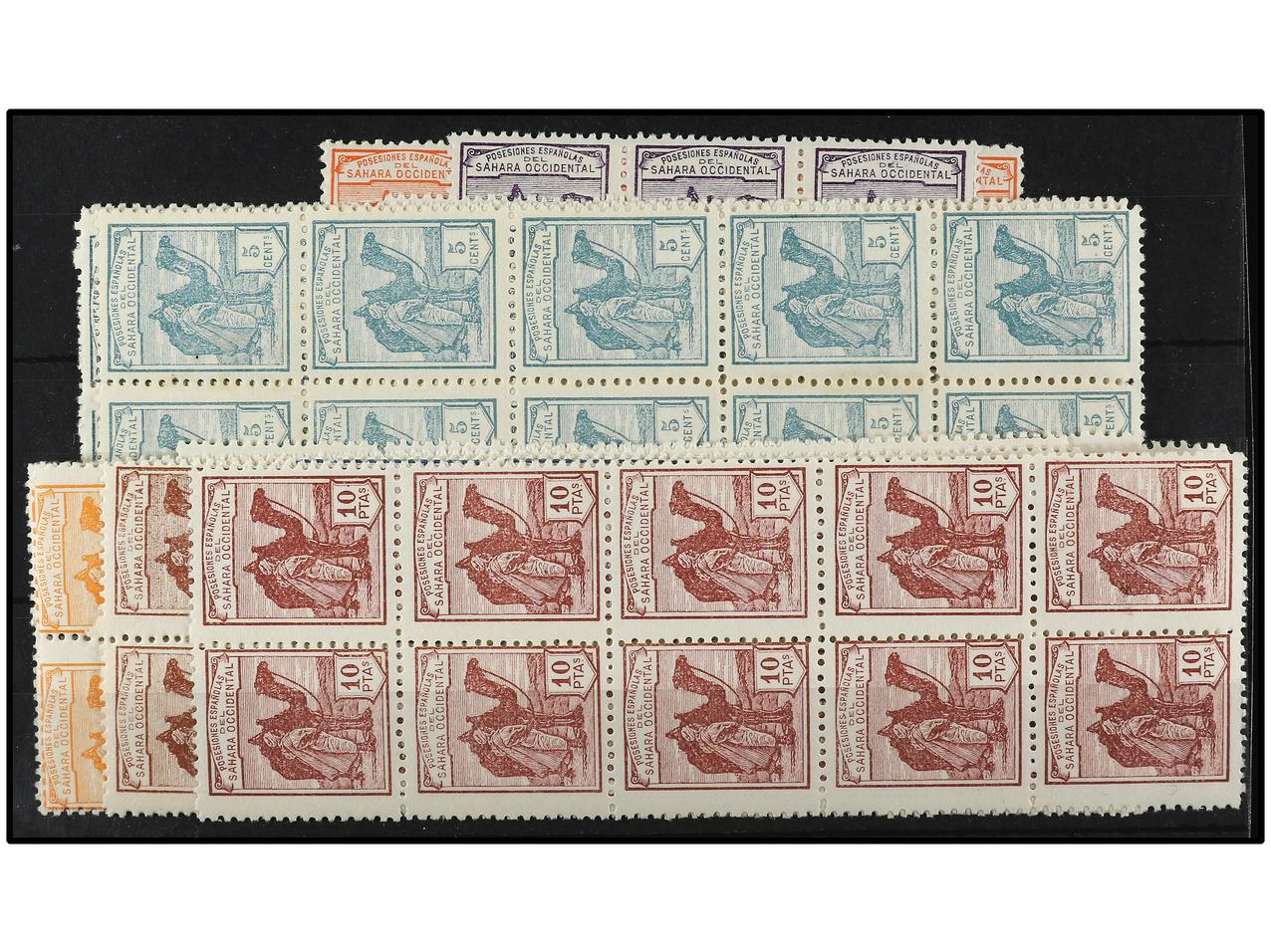 COLONIAS ESPAÑOLAS: SAHARA. 10 SERIES COMPLETAS, 12 valores en bloques. En general buena calidad. EXAMINAR. Ed.1/12 (10). Cat. 5.500€. (Image1) (Image2)