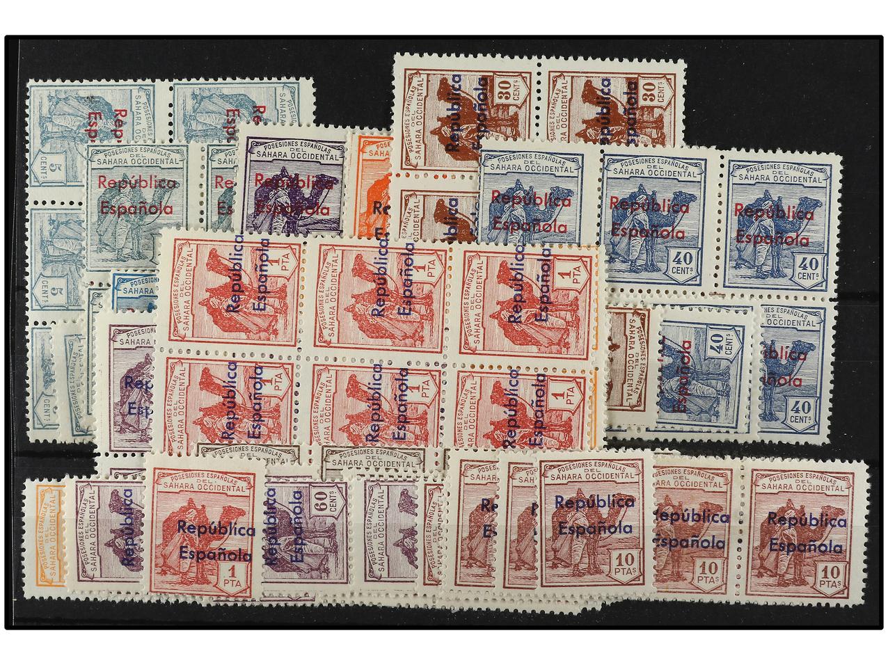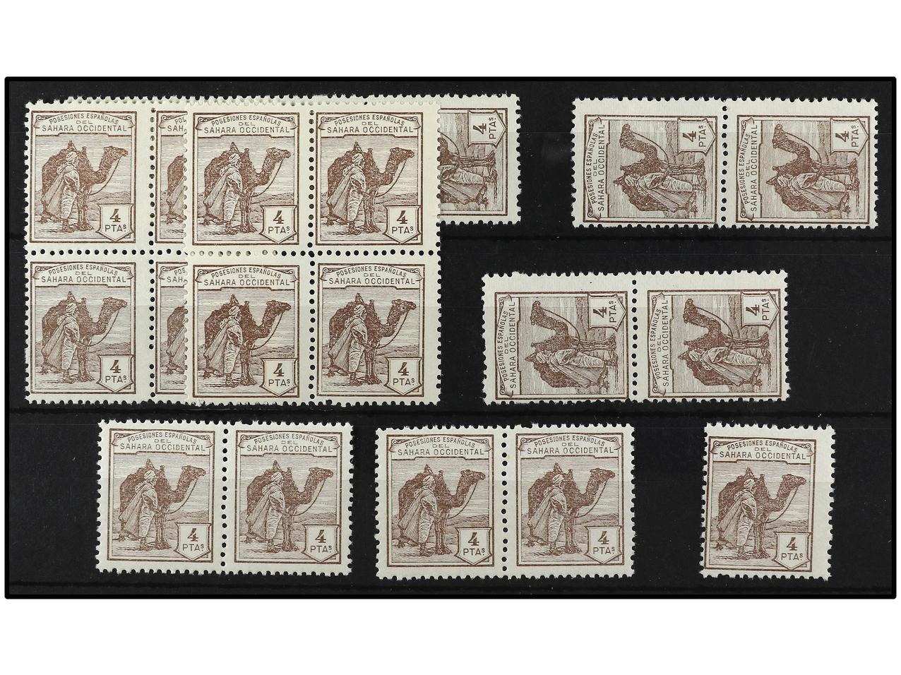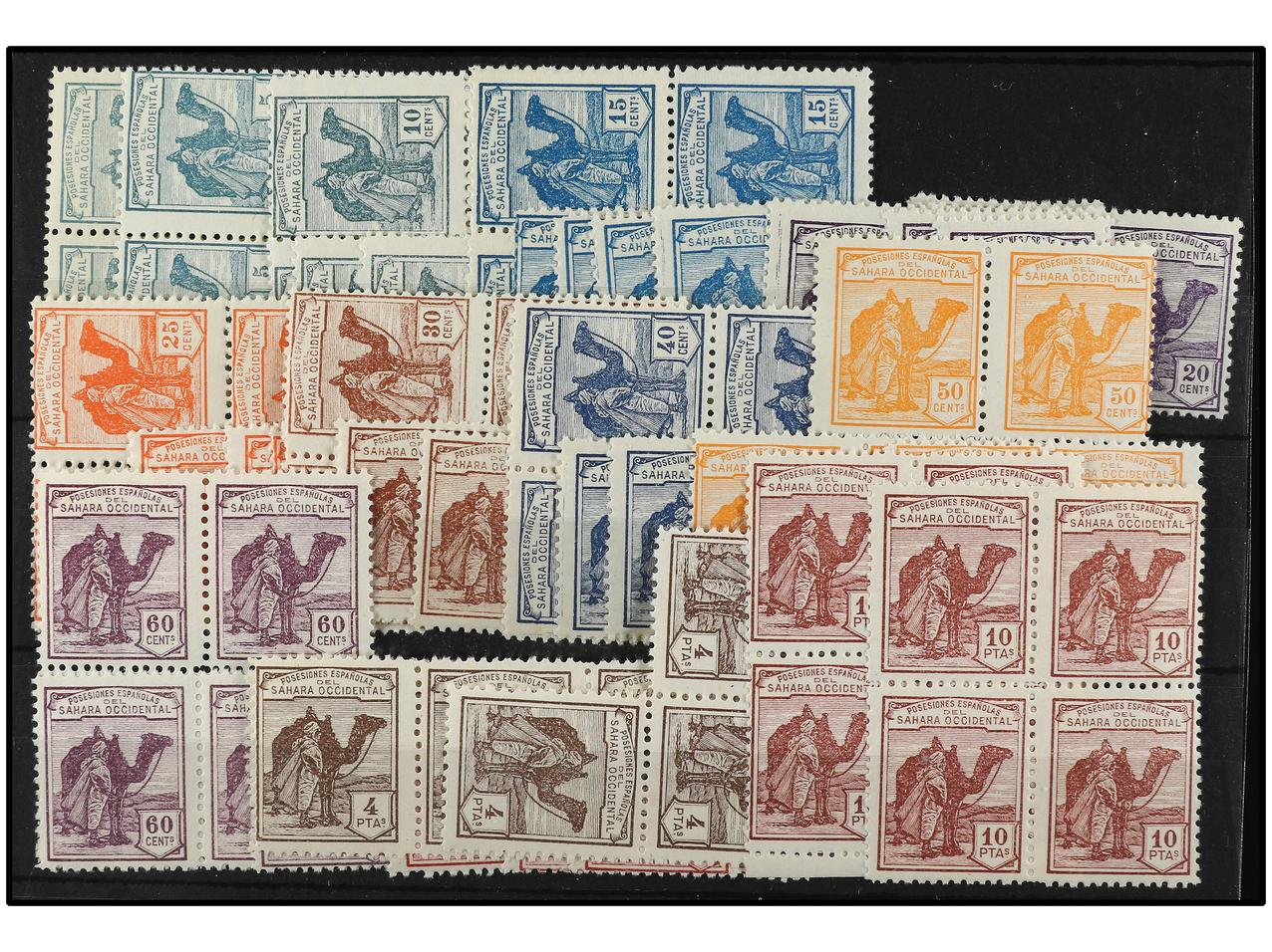 COLONIAS ESPAÑOLAS: SAHARA. 8 SERIES COMPLETAS, 12 valores sueltos y en bloques. En general buena calidad. EXAMINAR. Ed.1/12 (8). Cat. 4.400€.
