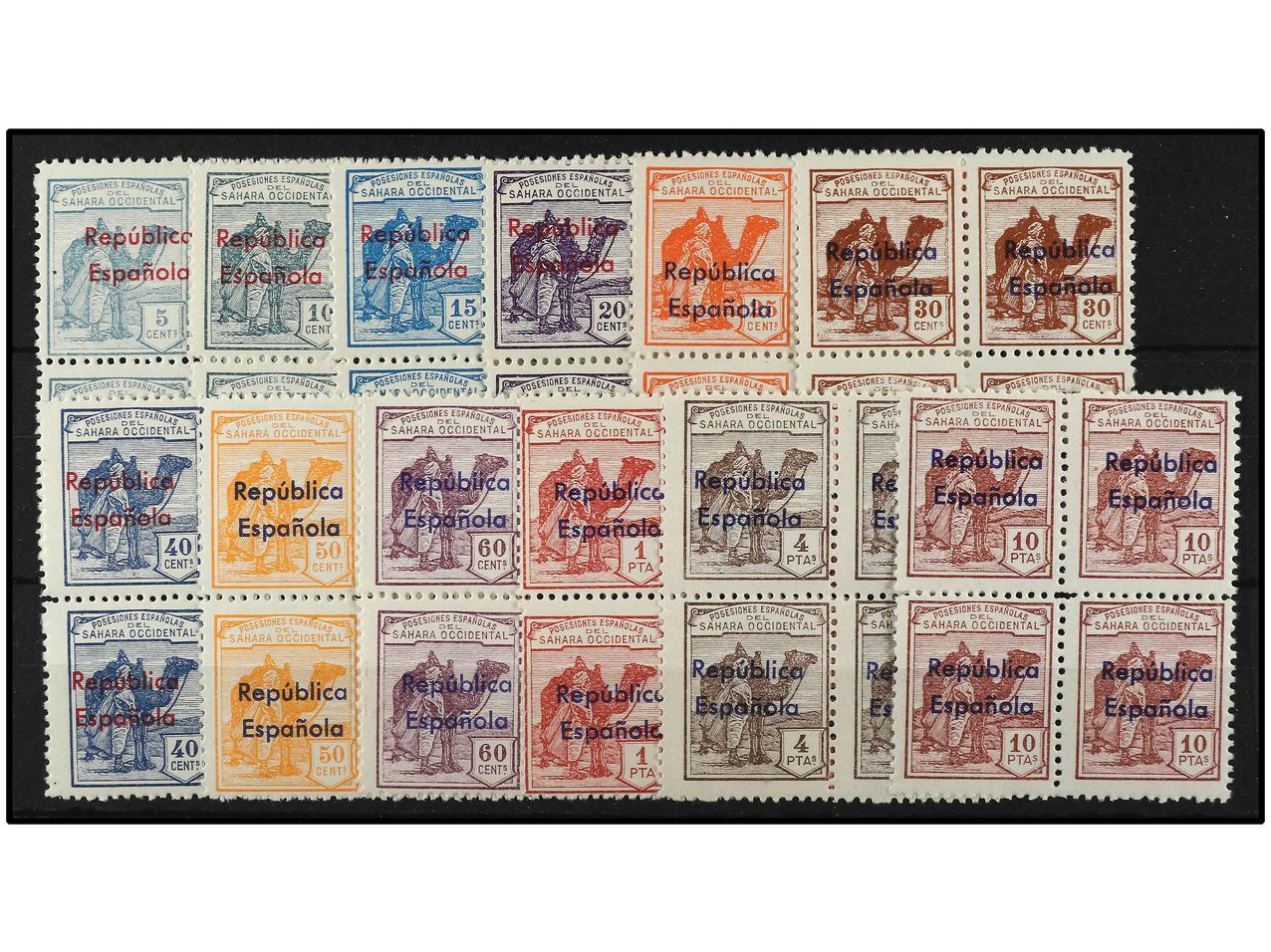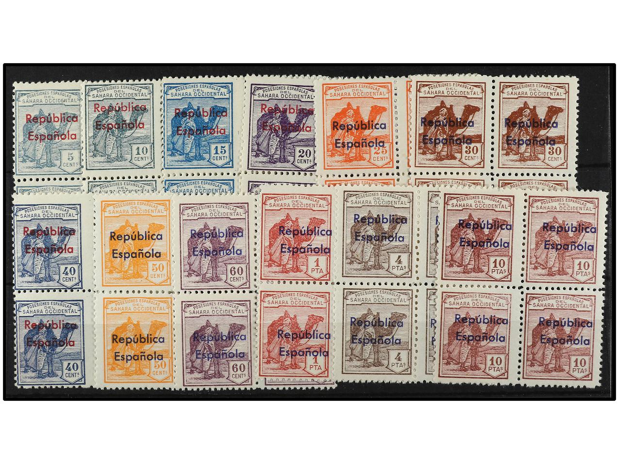 COLONIAS ESPAÑOLAS: SAHARA. SERIE COMPLETA. 12 valores en bloques de cuatro. HABILITACIÓN HORIZONTAL. Ed.36B/47B. Cat. 2.220€. (Image1) (Image2)