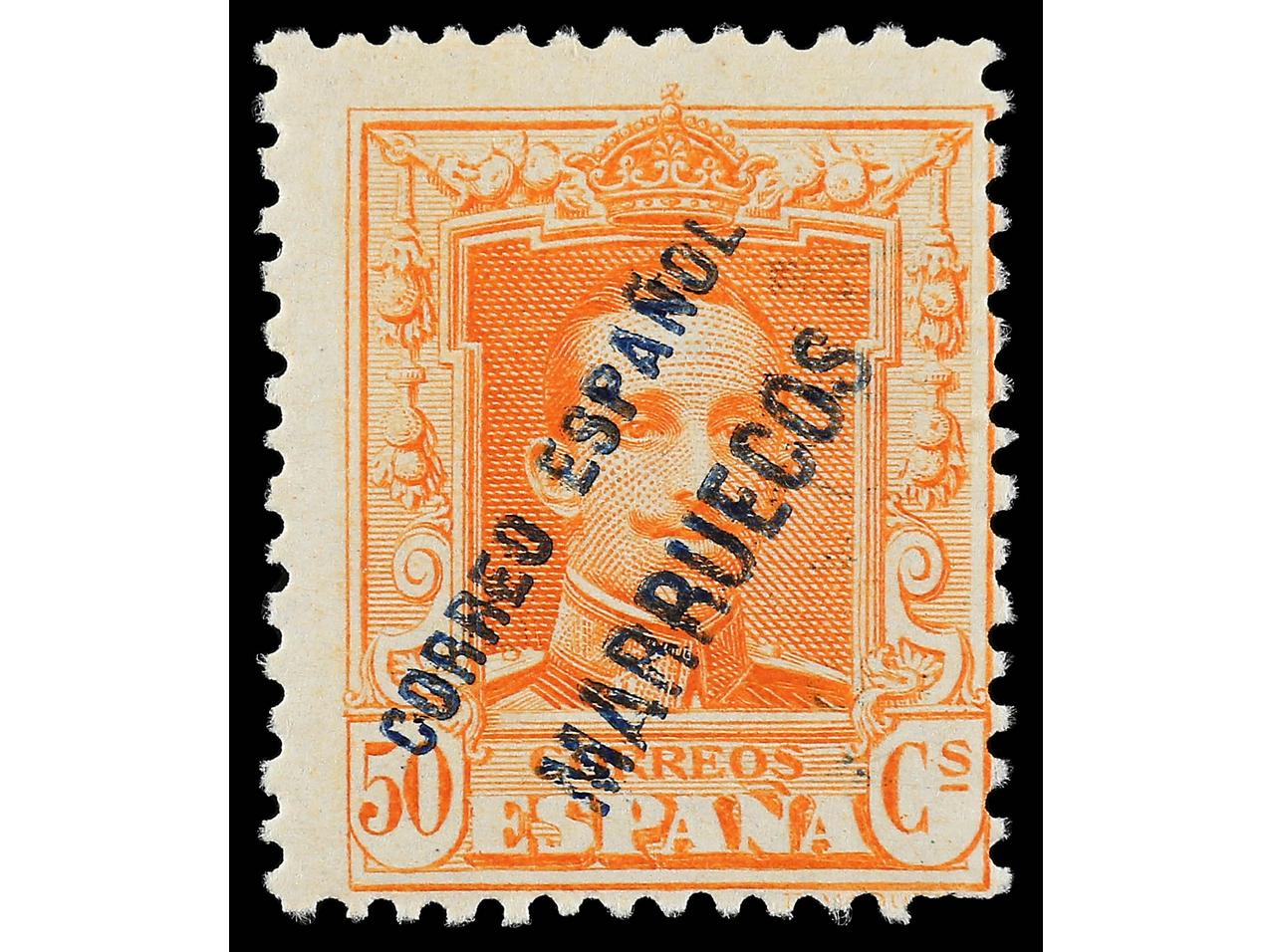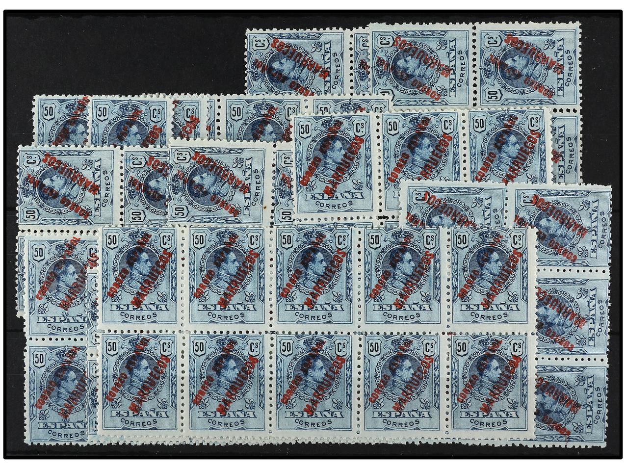 COLONIAS ESPAÑOLAS: TANGER. 50 c. azul. 61 sellos en bloques. Centrado habitual. Ed.8. Cat. 2.135€. (Image1)
