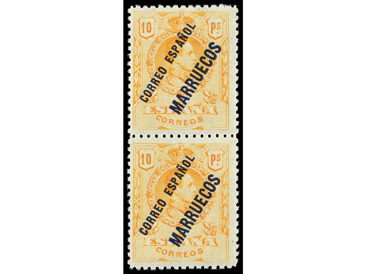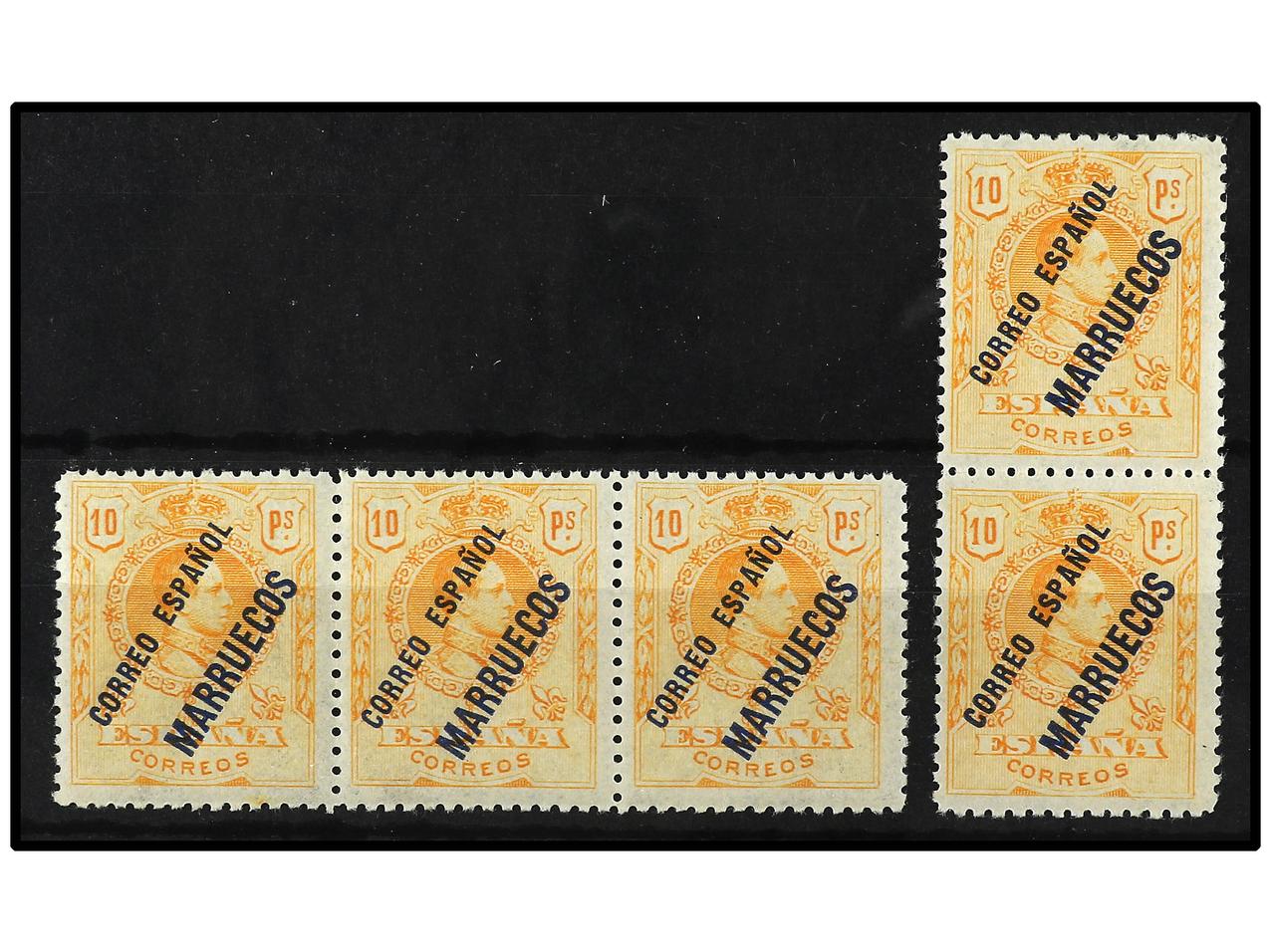 COLONIAS ESPAÑOLAS: TANGER. 10 pesetas naranja. 5 sellos. NO EXPENDIDO. Ed.NE 3. Cat. 650€. (Image1) (Image2)