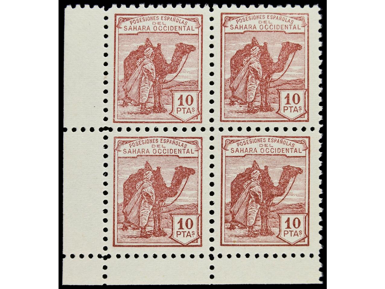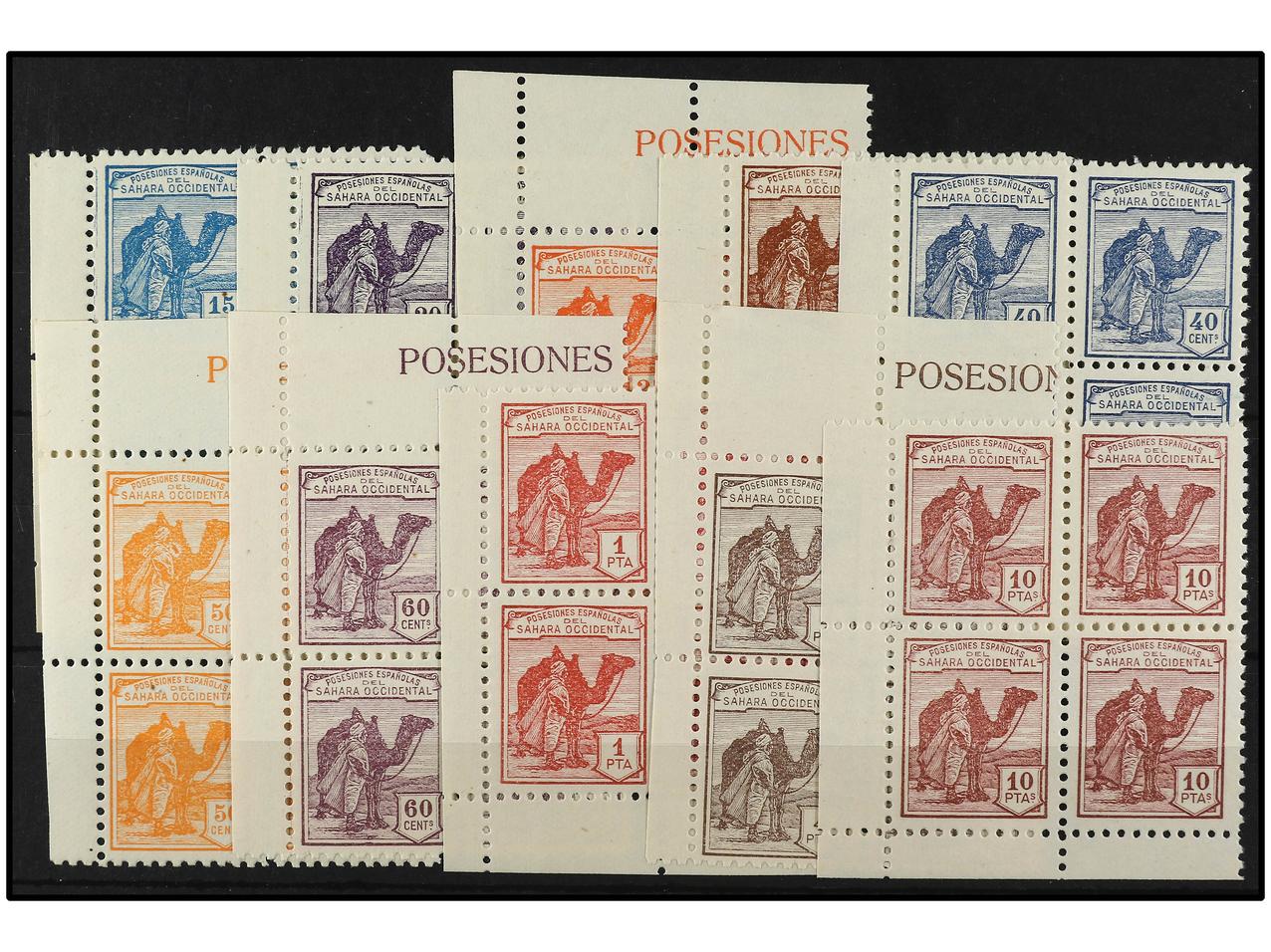 COLONIAS ESPAÑOLAS: SAHARA. SERIE COMPLETA, 10 valores NO EXPENDIDOS. Bloques de cuatro. Dos sellos de 10 pts. marcas en la goma. EXAMINAR. Ed.NE 1/10. Cat. +1.540€. (Image1) (Image2)