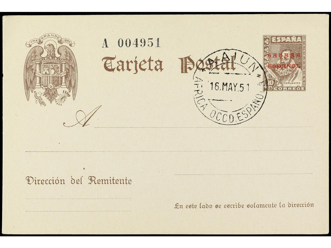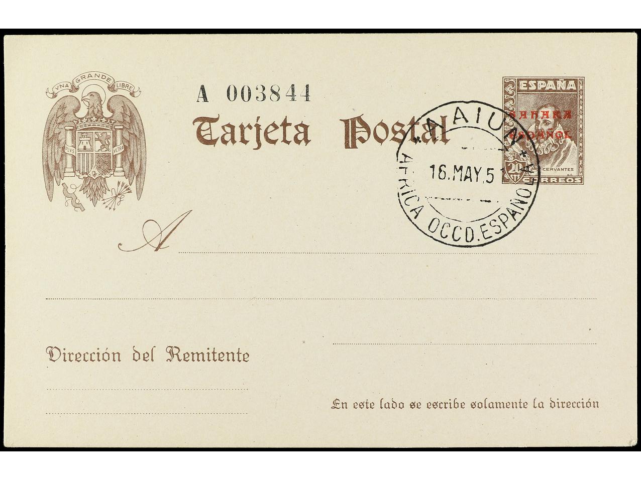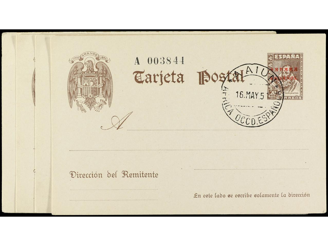 COLONIAS ESPAÑOLAS: SAHARA. 1941. ENTERO POSTAL. Mat. filatélico (MF). 5 ejemplares. Calidad diversa. A EXAMINAR. Ed.1 (5). Cat. 750€. (Image1) (Image2)