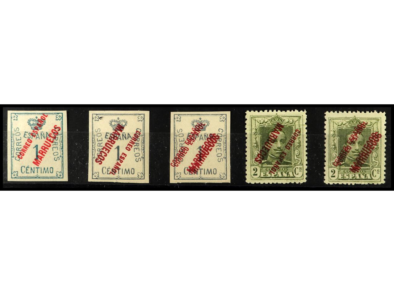 COLONIAS ESPAÑOLAS: TANGER. 1 cto. y 2 cts. con SOB. INVERTIDAS Y DOBLES. Todas catalogadas en Gálvez. Precioso conjunto. MUY RARO. Ed.13, 13hi, 13hh, 17hi y 17hh. (Image1) (Image2)
